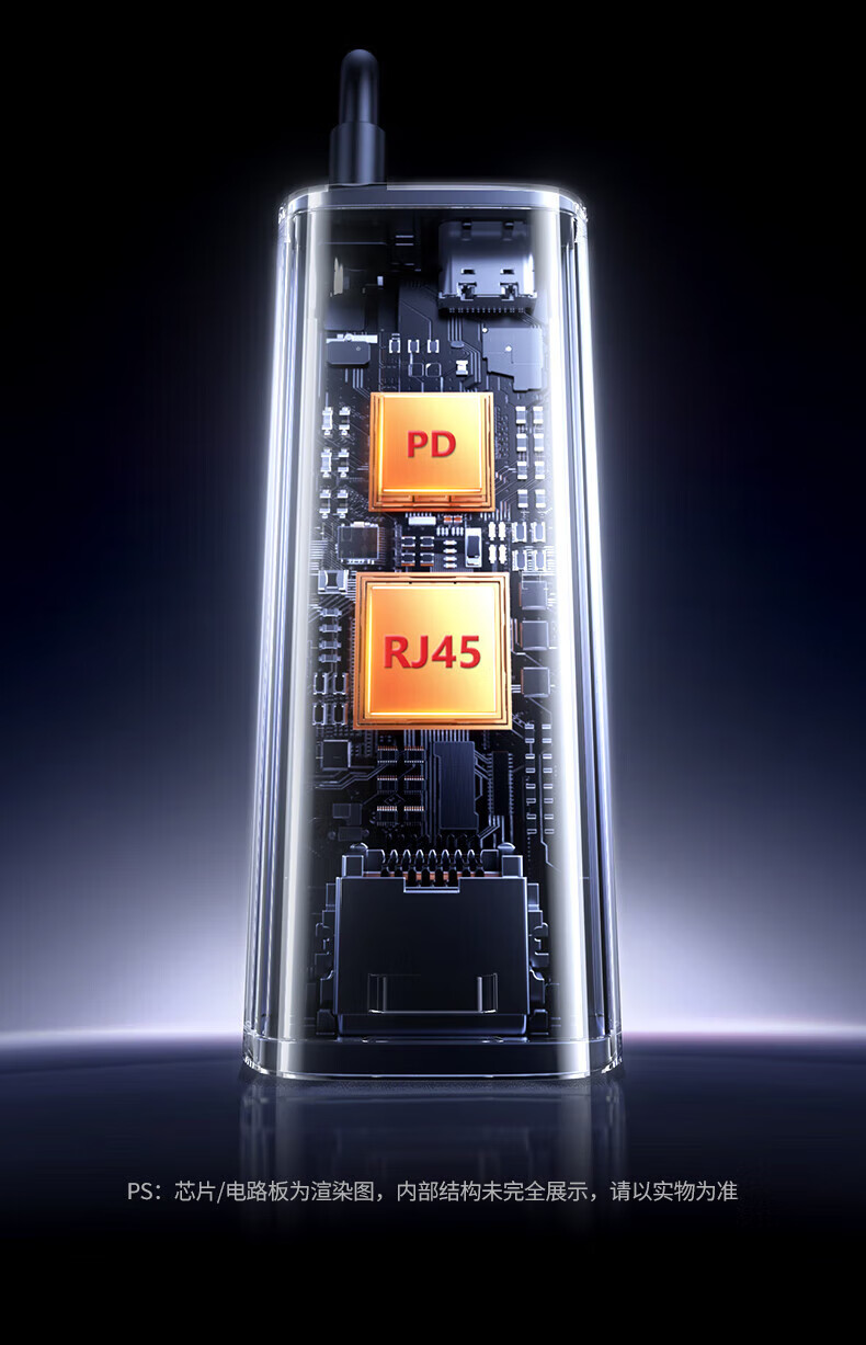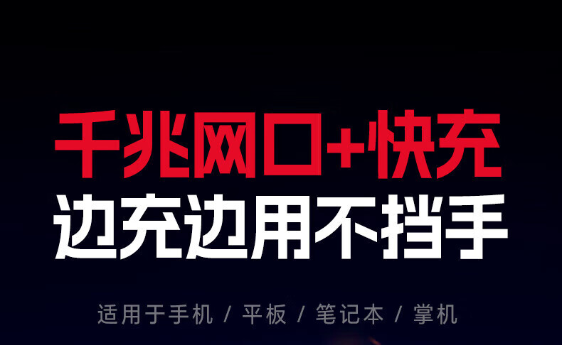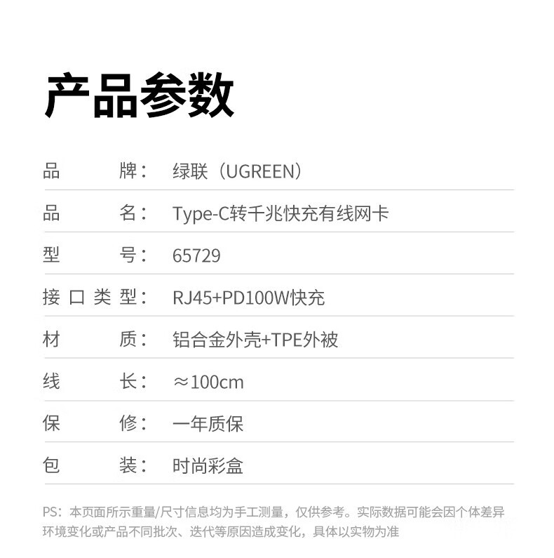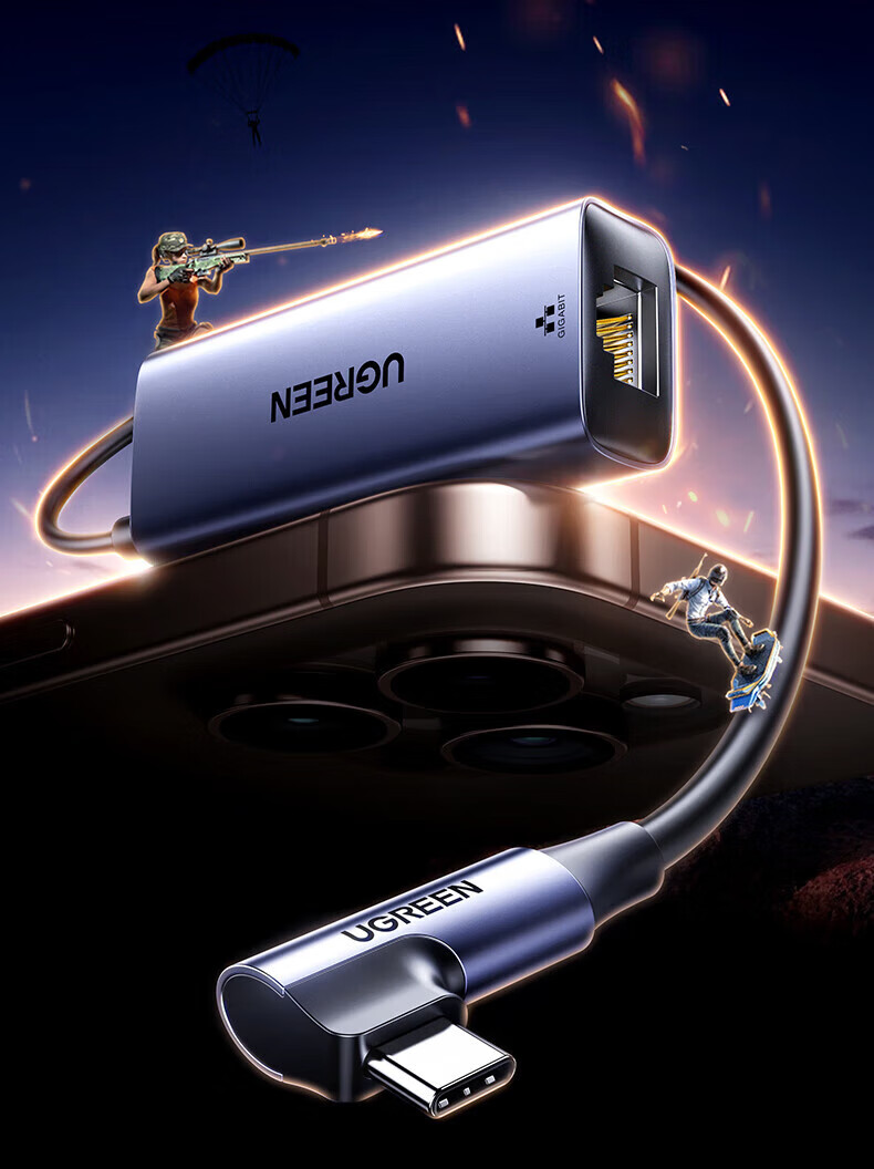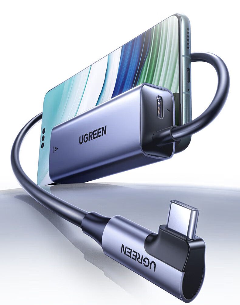 绿联Type-C转RJ45+PD充电口 千兆网卡转换器 长线弯头款 1米 65729