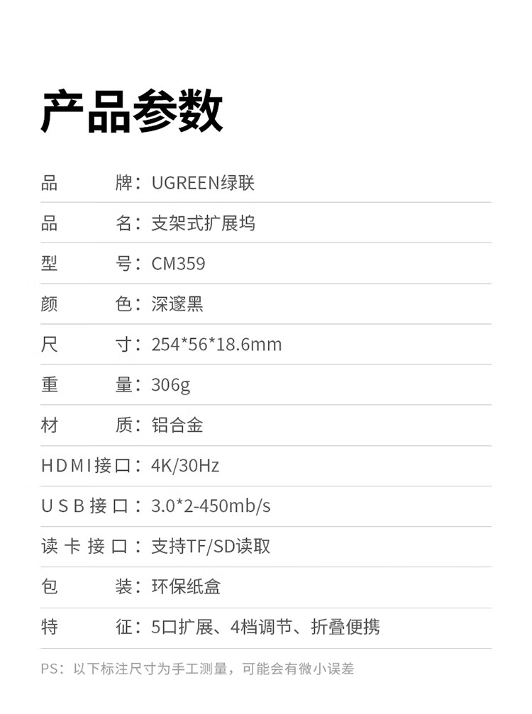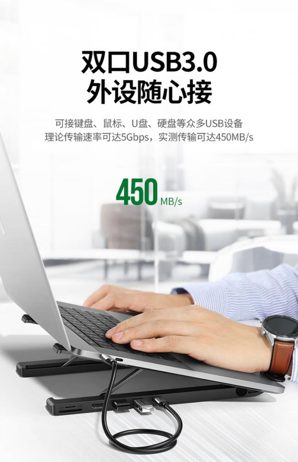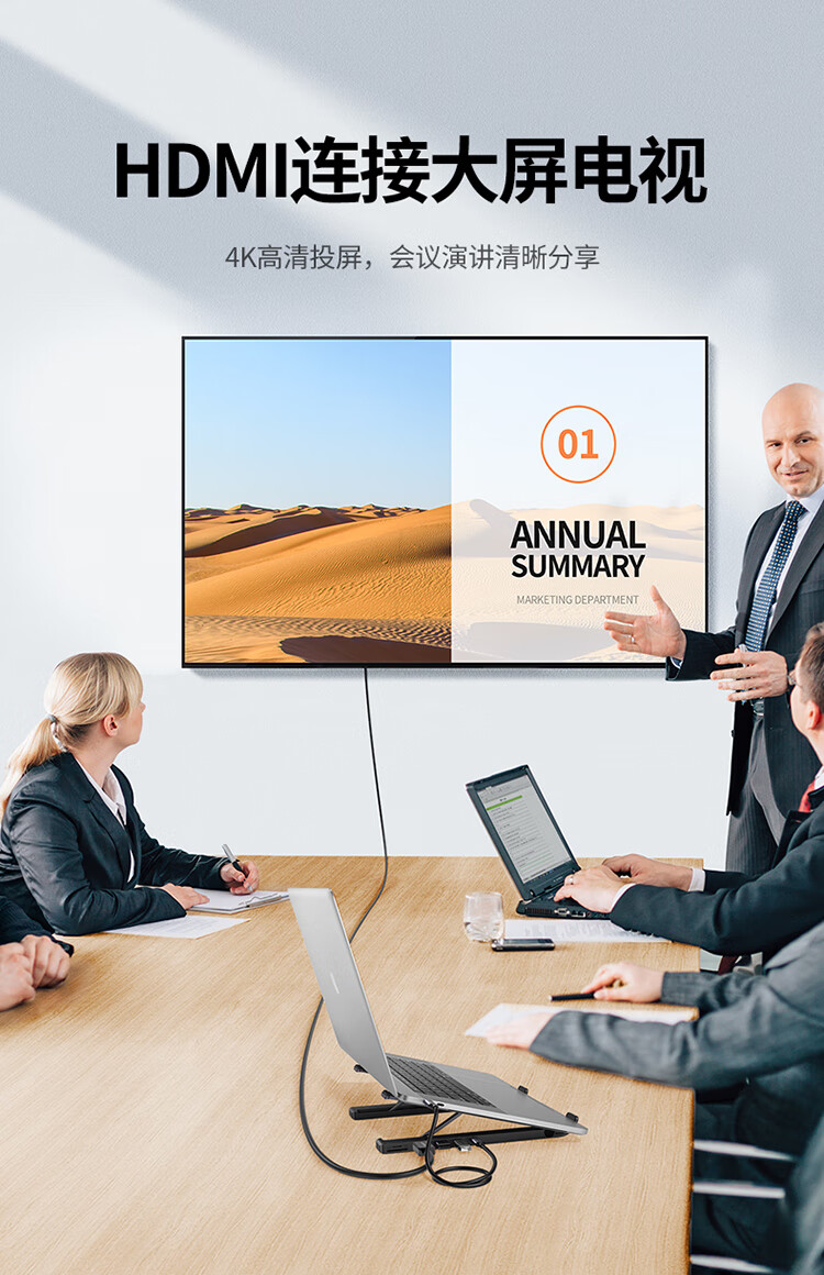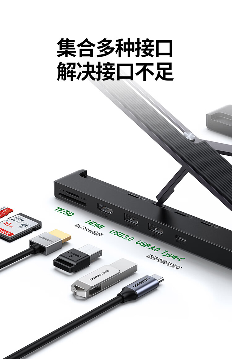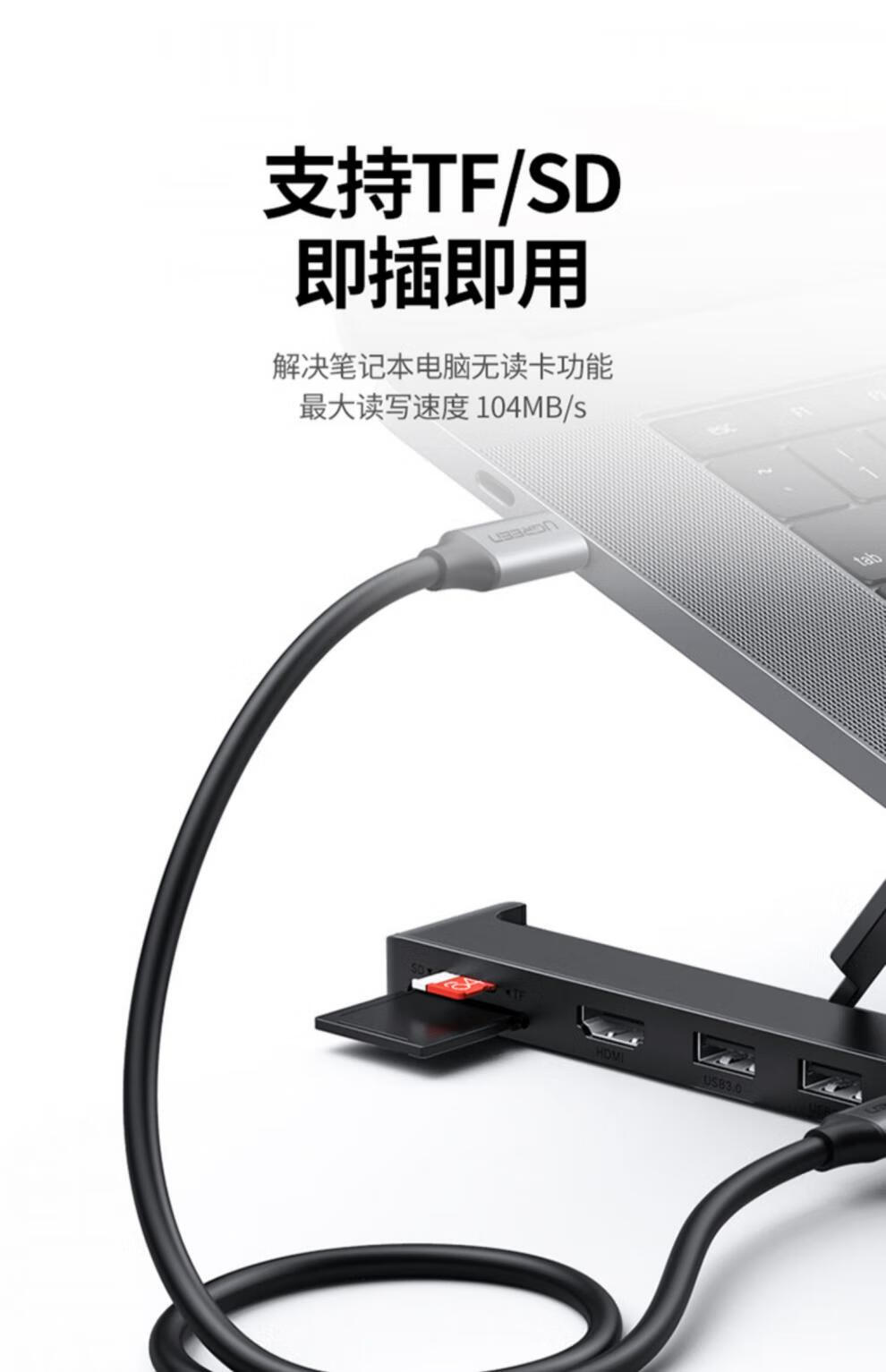 绿联Type-C转HDMI+2口USB+读卡器多合一拓展坞 黑色 80551