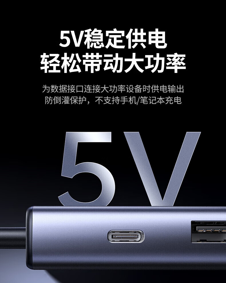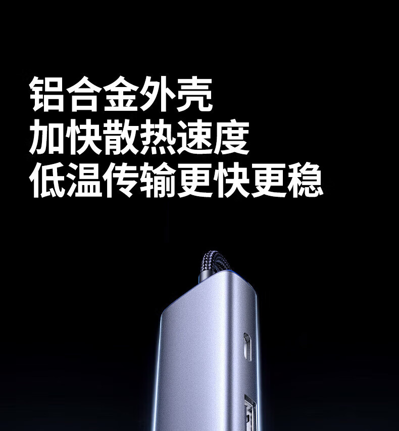绿联TypeC转USB3.2+2*Type-C+*USB2.0+千兆网卡+PD 6合1多功能扩展坞 深空灰0.3米 45320