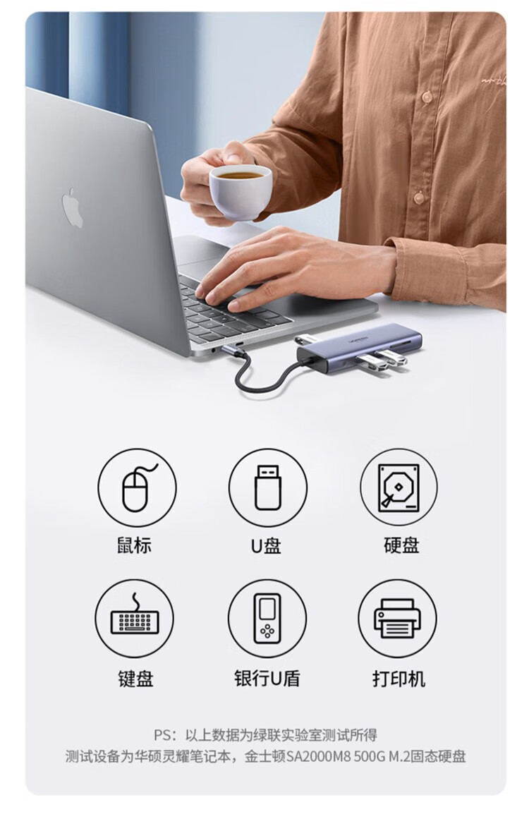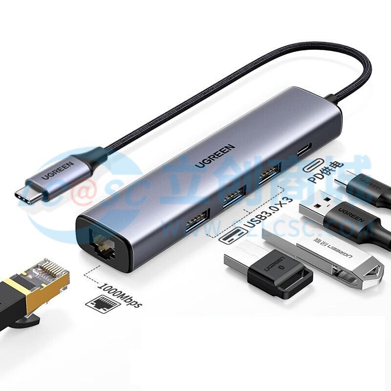 绿联Type-C多功能千兆网卡转3*USB 3.0集线器 含PD充电 千兆+PD 20932