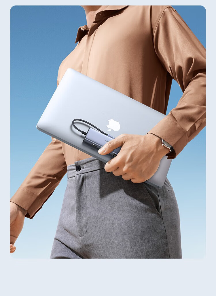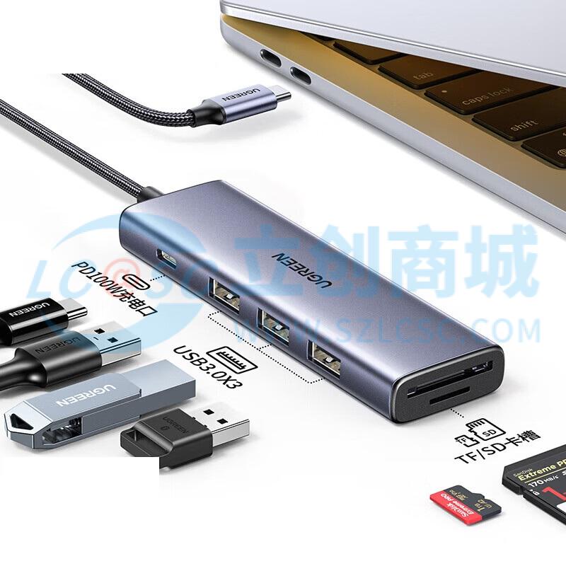 绿联TypeC转3*USB3.0+SD/TF+PD 六合一扩展坞 深空灰0.2米 25040