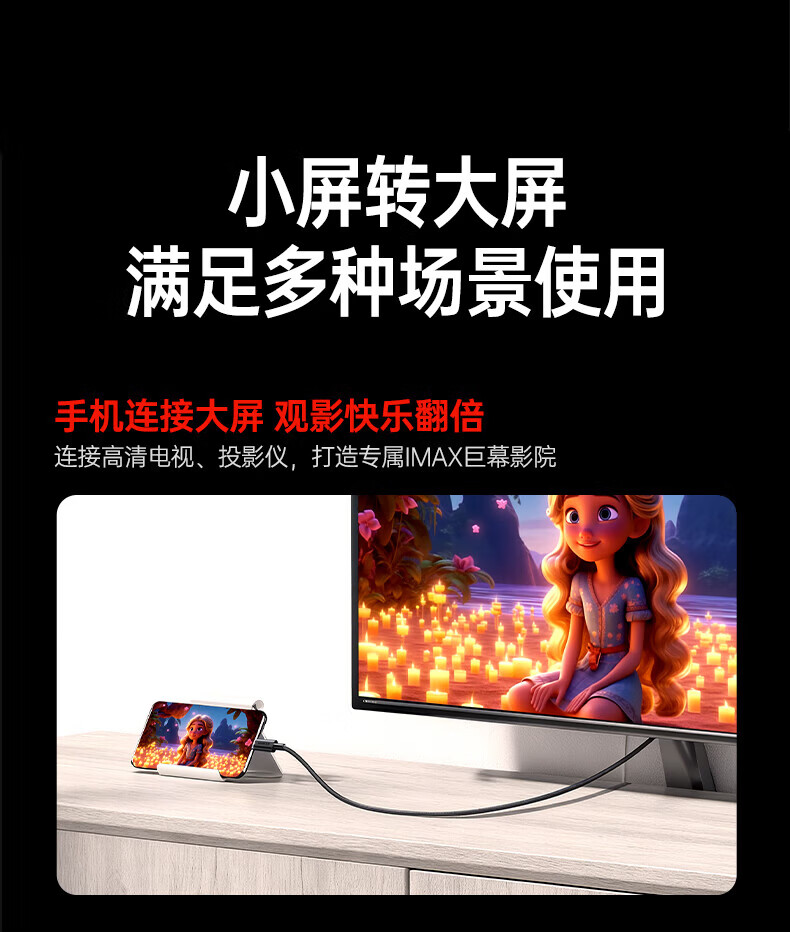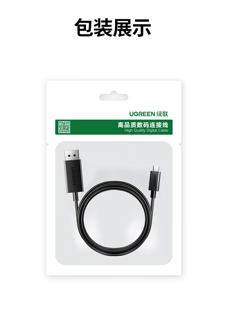 绿联Type C转DP 8K 投屏转换线DP1.4 铝壳款 深空灰1.5米 90309