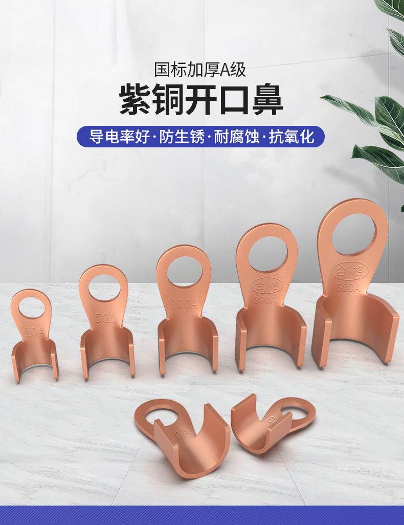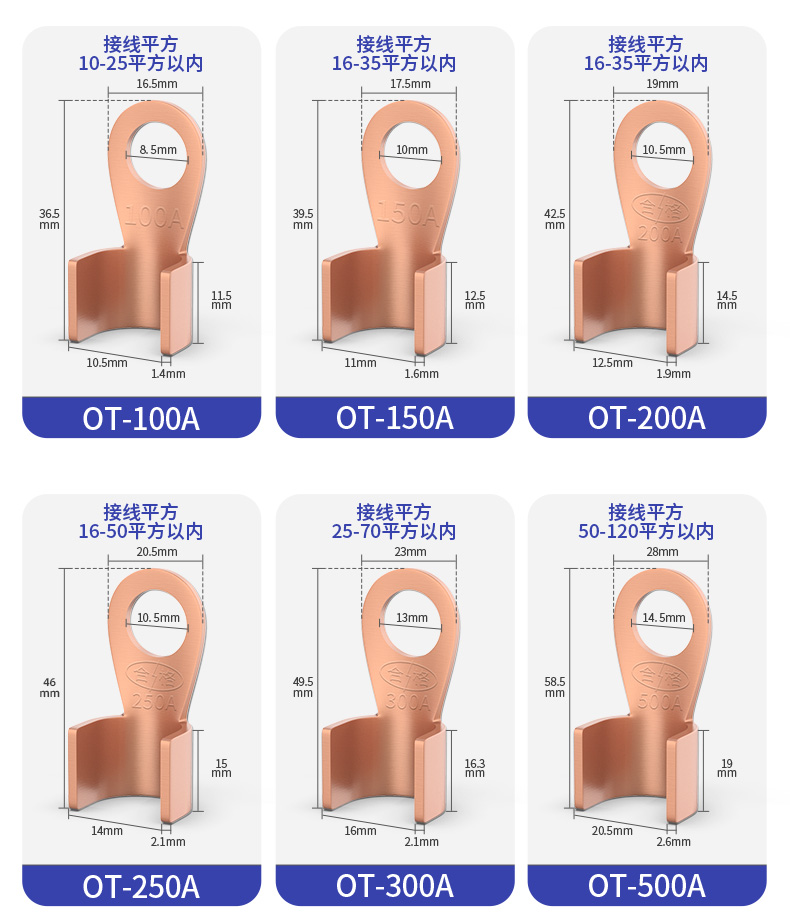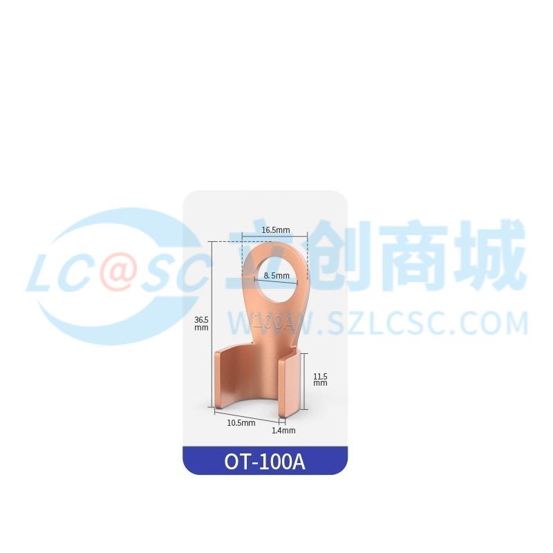 HUIJUN(汇君)OT紫铜接线端子OT-100A紫铜开口接线端子100A,适用于压线范围10-25平方以内