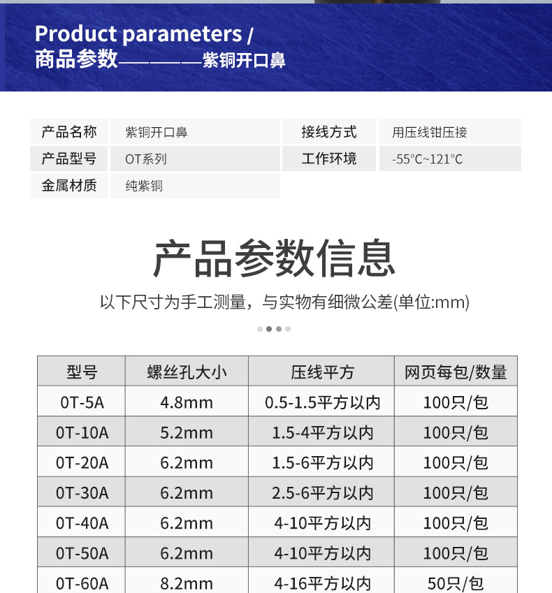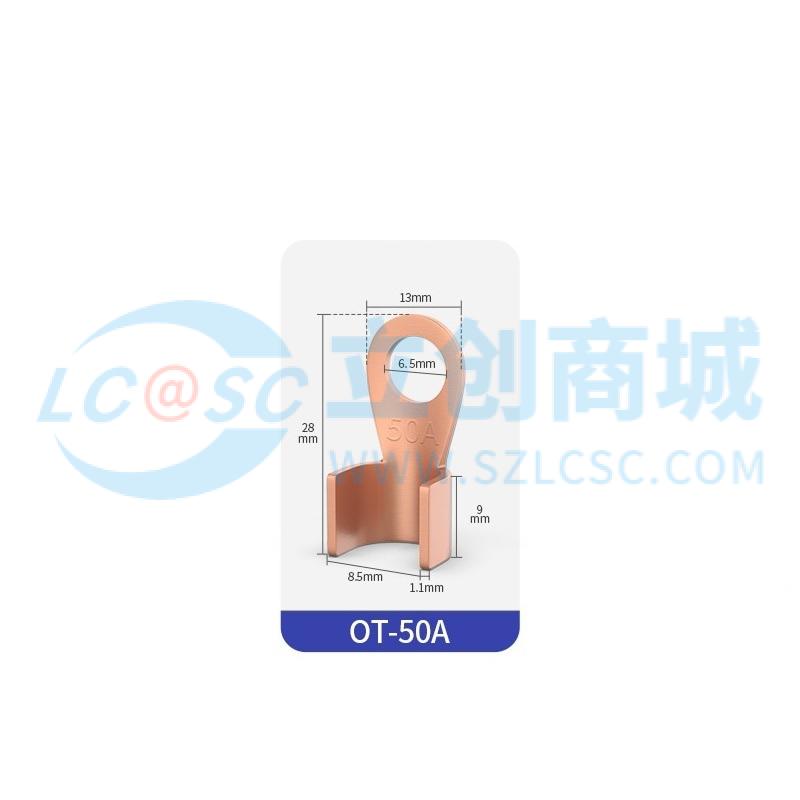 HUIJUN(汇君)OT紫铜接线端子OT-50A紫铜开口接线端子50A,适用于压线范围4-10平方以内