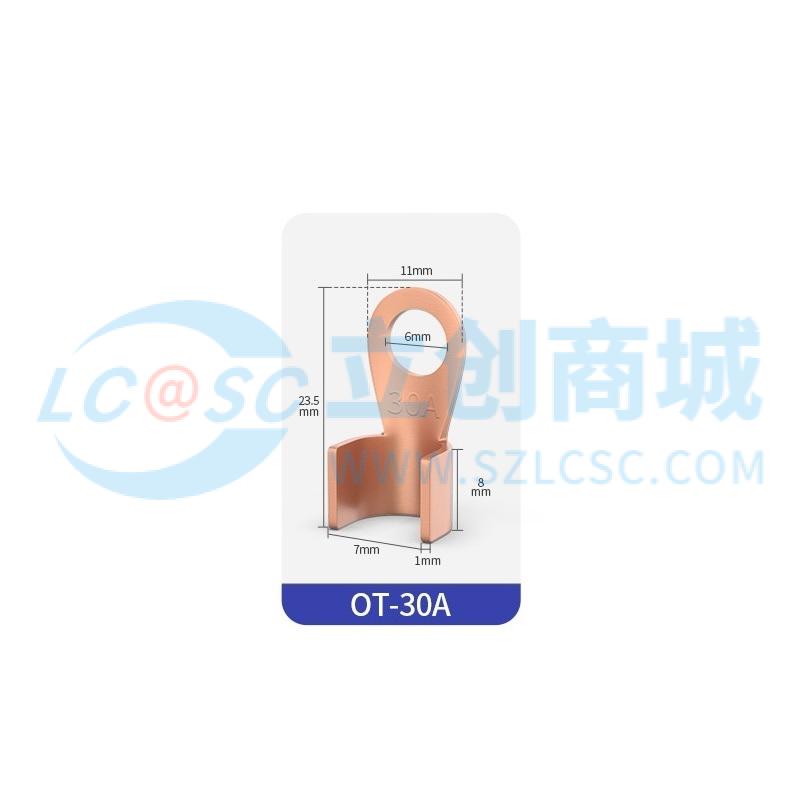 HUIJUN(汇君)OT紫铜接线端子OT-30A紫铜开口接线端子30A,适用于压线范围2.5-6平方以内
