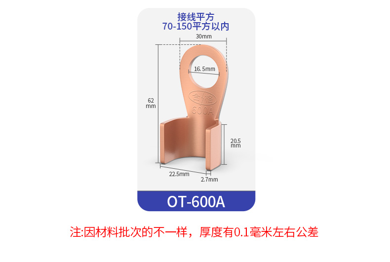 HUIJUN(汇君)OT紫铜接线端子OT-800A紫铜开口接线端子800A,适用于压线范围90-180平方以内