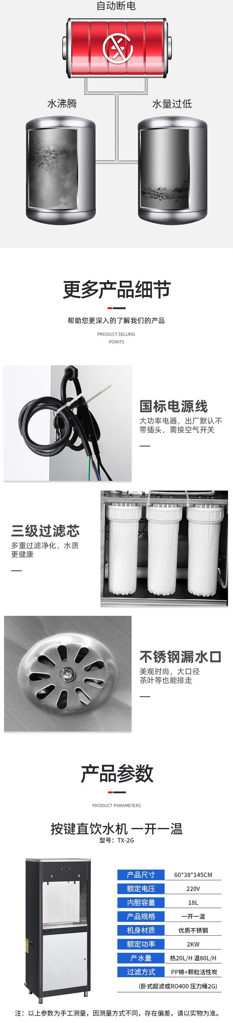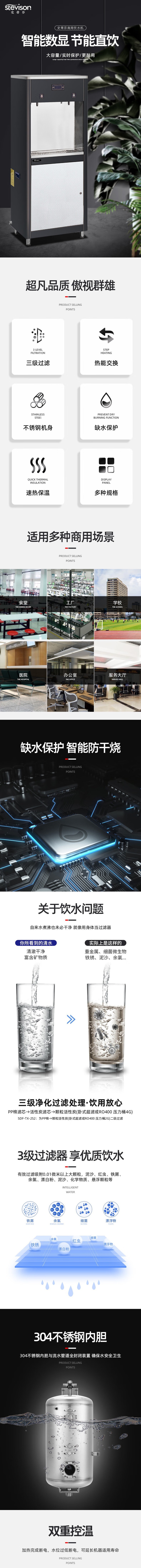 Stevison(史蒂芬) TX-2G 节能饮水机 商用开水器 柜式 一开一温 三级过滤 220V 2KW 不锈钢