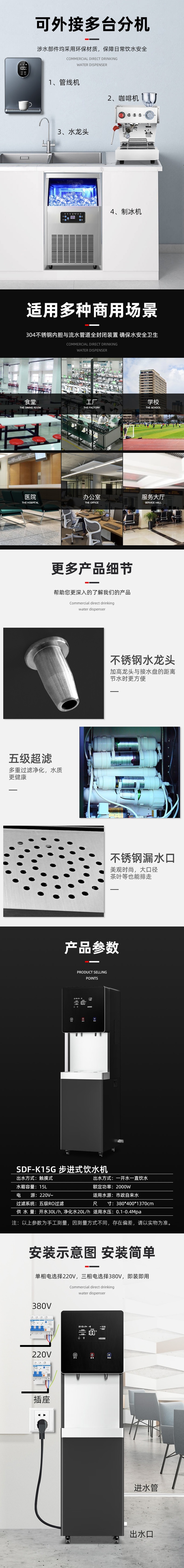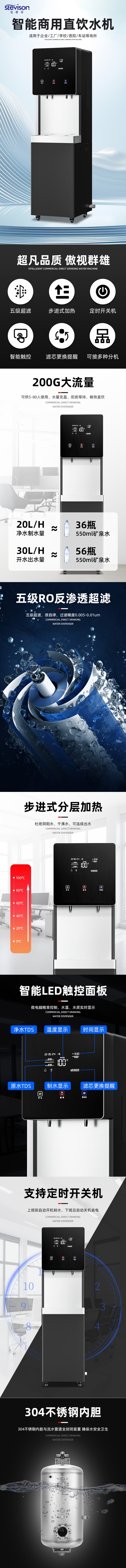Stevison(史蒂芬) SDF-K15G 商务步进式饮水机五级RO反渗透过滤 带童锁 换滤芯提醒功能 高档黑