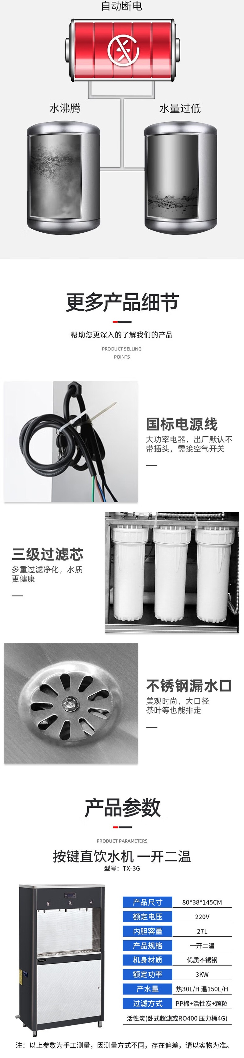 Stevison(史蒂芬) TX-3G 节能饮水机 商用开水器 柜式 一开二温 三级过滤 220V 3KW 不锈钢