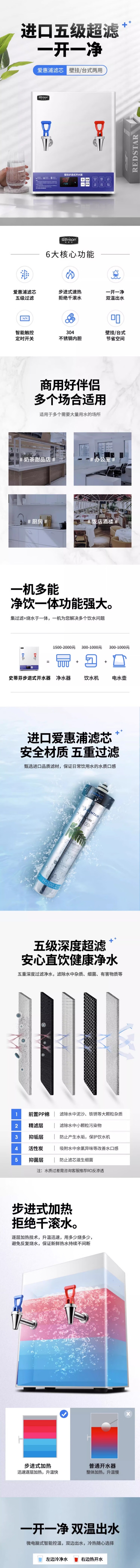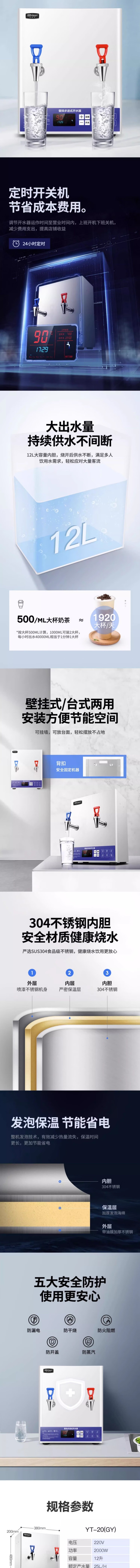 Stevison(史蒂芬) YT-20(GY)壁挂开水器 容量12L 电压220V 功率2000W 爱惠浦过滤 一开一净 不锈钢+白色