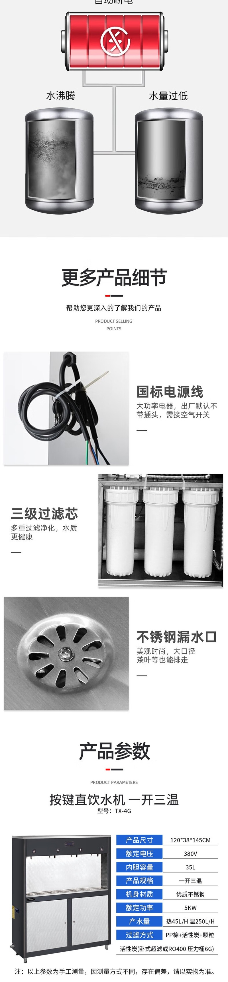 Stevison(史蒂芬) TX-4G 节能饮水机 商用开水器 柜式 一开三温 三级过滤 380V 4.5KW 不锈钢