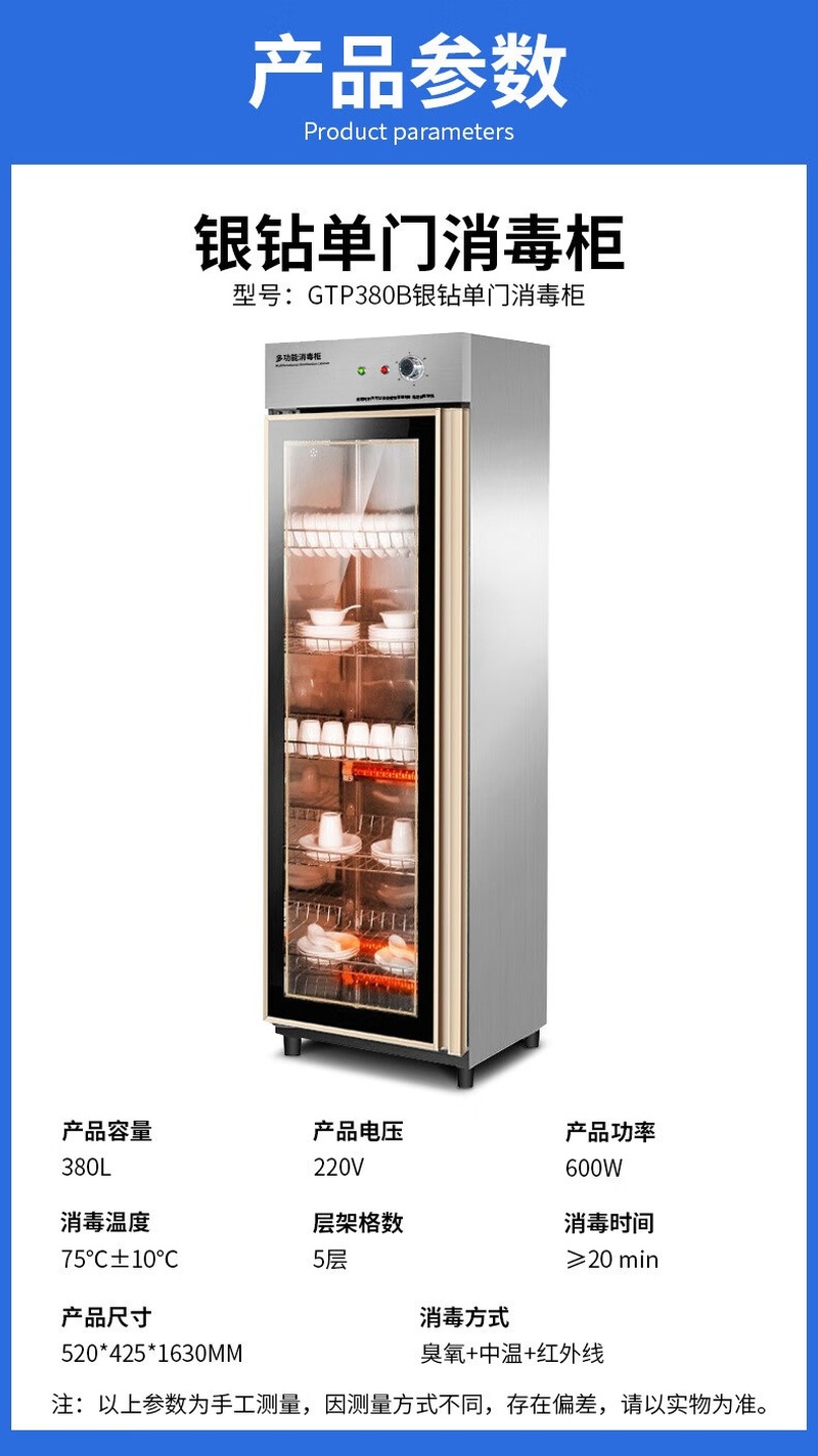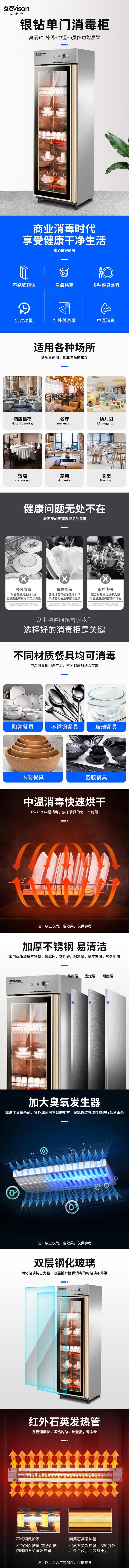 Stevison(史蒂芬) SDF-GTP380B 银钻单门中温消毒柜 容量380L 220V 臭氧+低温红外线消毒 不锈钢+玻璃