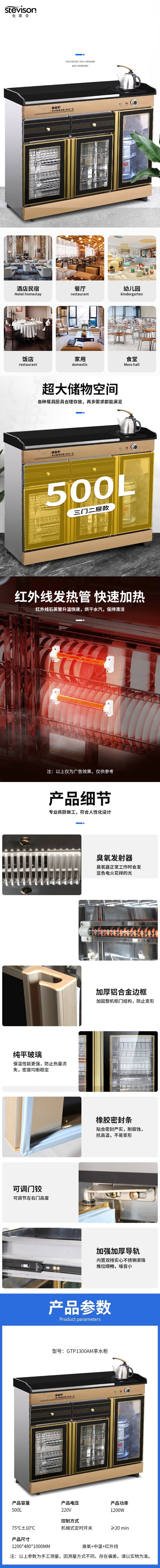 Stevison(史蒂芬) SDF-GTP1300AM 茶水消毒柜(带烧水壶)土豪金 容量500L 220V 臭氧+中温红外线 电镀层架,一体暗拉手 不锈钢+玻璃