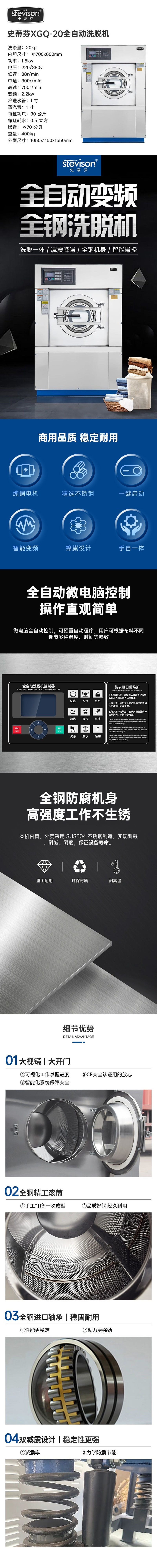 Stevison(史蒂芬) XGQ-20 全自动洗脱一体机20公斤(洗涤量是指一次洗涤的干衣容量) 304不锈钢