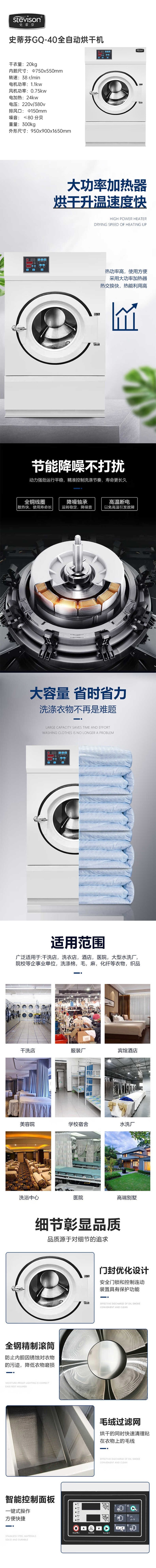 Stevison(史蒂芬) GQ-40 全自动烘干机(20公斤)电压:220v/380v 304不锈钢