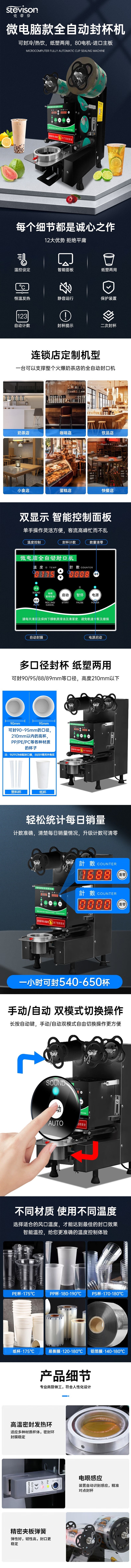 Stevison(史蒂芬) XBY-F-90/95 黑色 微电脑款全自动封杯机220V 350W 冷热水两用,可连续封70度热水铁板+烤漆