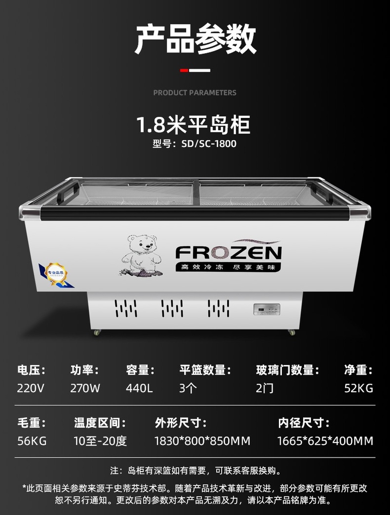 Stevison(史蒂芬) SD/SC-1800 1.8米平岛柜 容量:440L 电压:220V 功率:270W 家电镀锌喷涂漆+玻璃
