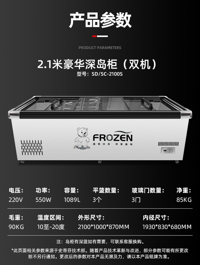 Stevison(史蒂芬) SD/SC-2100S 2.1米豪华深岛柜(双机) 容量:1089L 电压:220V 功率:550W 家电镀锌喷涂漆+玻璃