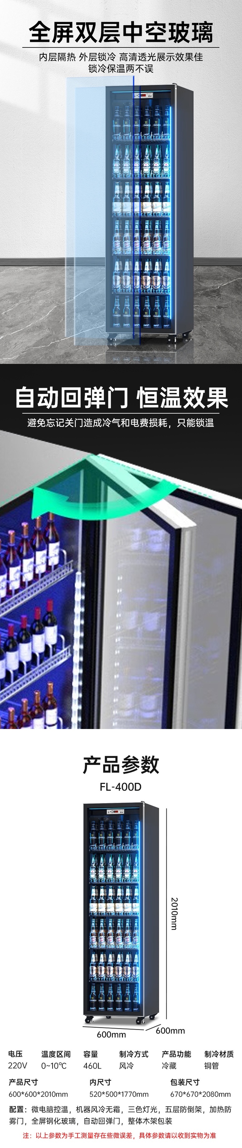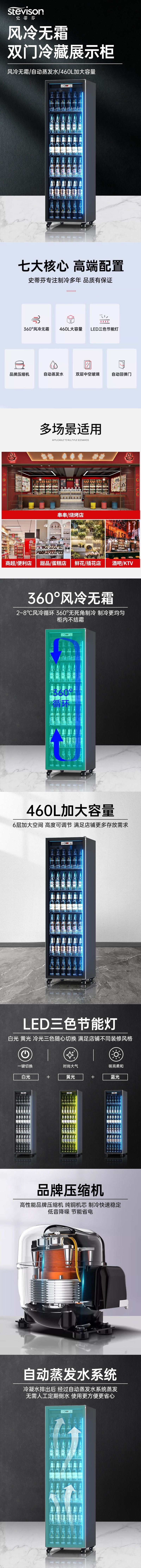 Stevison(史蒂芬) FL-400D 单门展示柜 酒水柜 饮料柜容量460L 电压220V 功率180W 全冷藏 风冷款 家电镀锌喷涂漆+玻璃