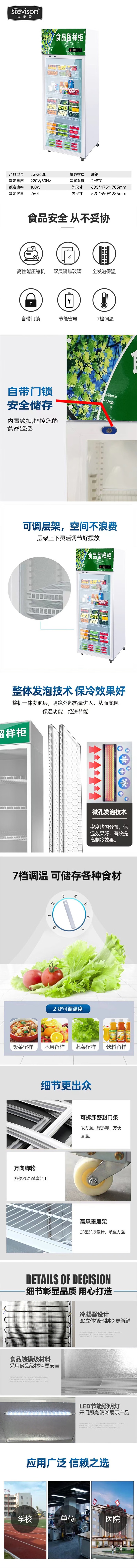 Stevison(史蒂芬) LG-260L 食品留样柜(带锁)展示柜全冷藏260L大容量 带锁彩钢+玻璃