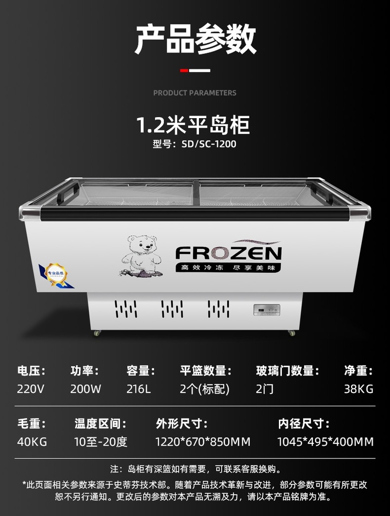 Stevison(史蒂芬) SD/SC-1200 1.2米平岛柜 容量:216L 电压:220V 功率:200W 家电镀锌喷涂漆+玻璃