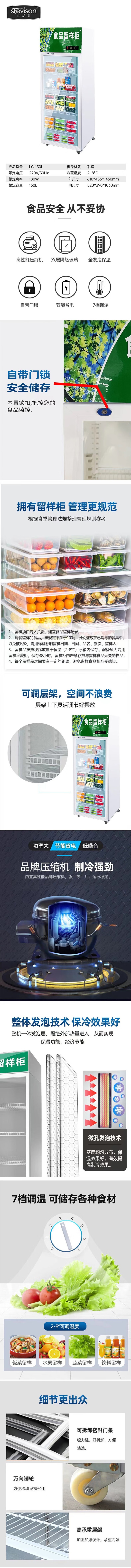 Stevison(史蒂芬) LG-150L食品留样柜(带锁)展示柜全冷藏150L 彩钢+双层玻璃