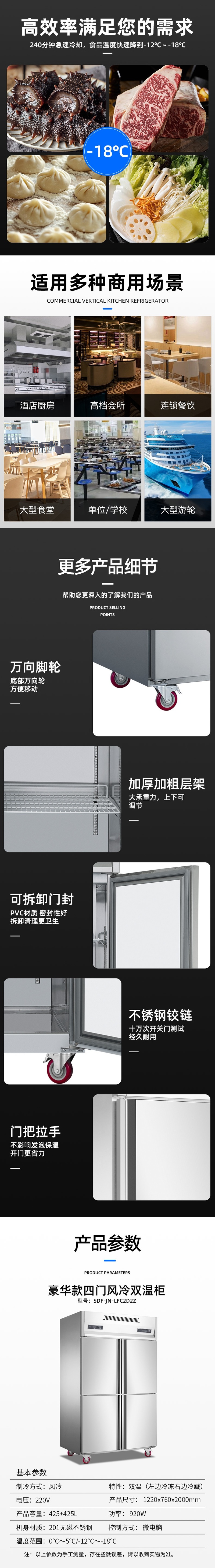 Stevison(史蒂芬) SDF-JN-LFC2D2Z 豪华款风冷四门冰柜(双温) 电压:220V 功率:920W 容量:425+425L 不锈钢