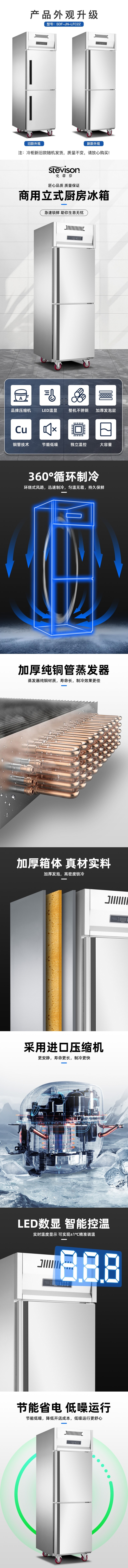Stevison(史蒂芬) SDF-JN-LFC2Z 豪华款风冷上下双门冰柜(全冷藏)电压:220V 功率:387W 容量:410L 不锈钢
