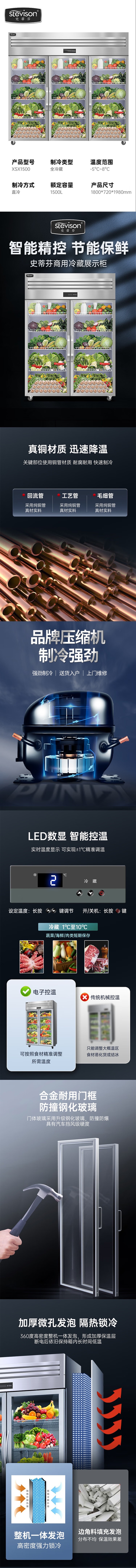 Stevison(史蒂芬) XSX1500 三门玻璃展示柜 1500L直冷 不锈钢+玻璃