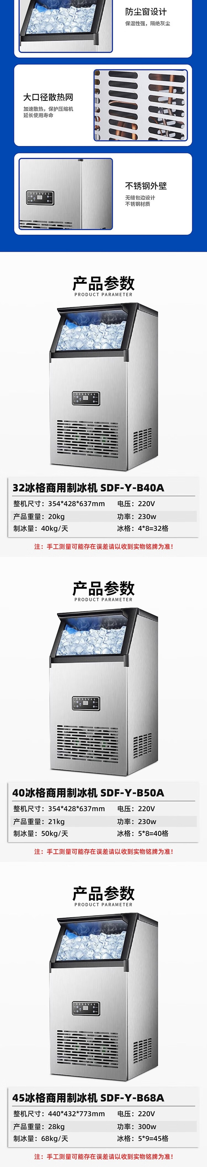 Stevison(史蒂芬) SDF-Y-B40A 制冰机32冰格 制冰效率:40KG/天 不锈钢
