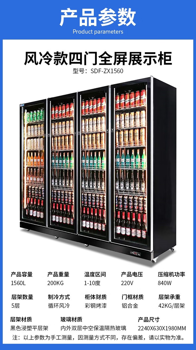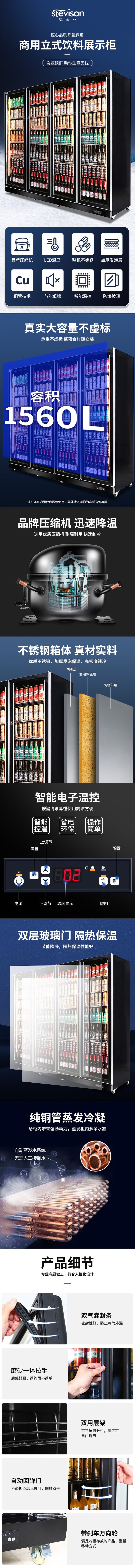 Stevison(史蒂芬) SDF-ZX1560 高端风冷款四门全屏展示柜 饮料酒水蔬菜展示柜陈列柜220V 1560L 彩钢烤漆