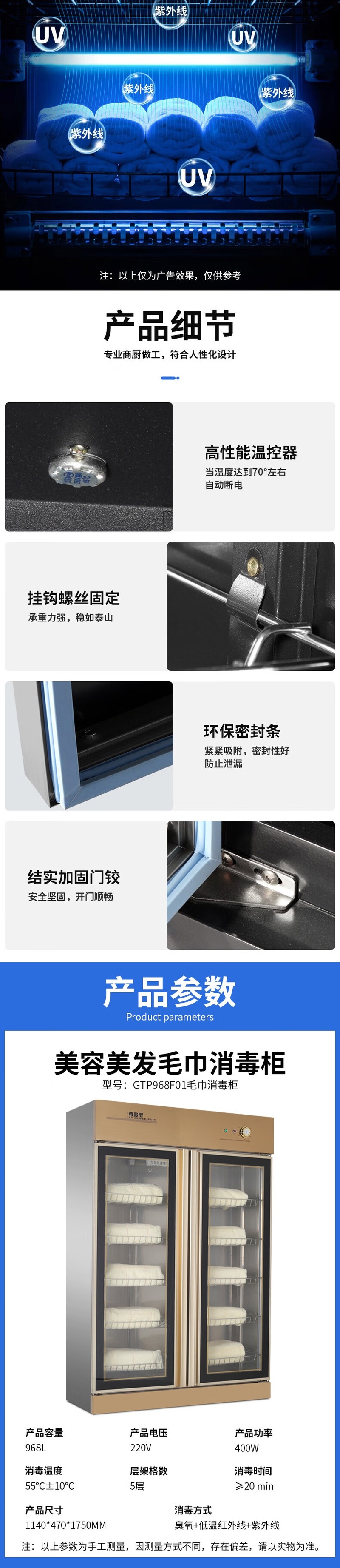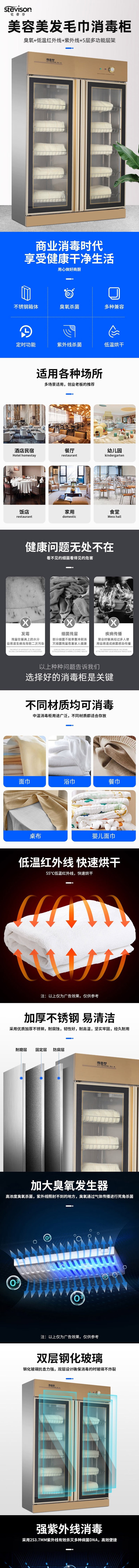 Stevison(史蒂芬) SDF-GTP968F01 双门毛巾消毒柜 大容量968L 220V 臭氧+低温红外线+紫外线 机械款定时开关 下沉发热不伤衣物 不锈钢+玻璃