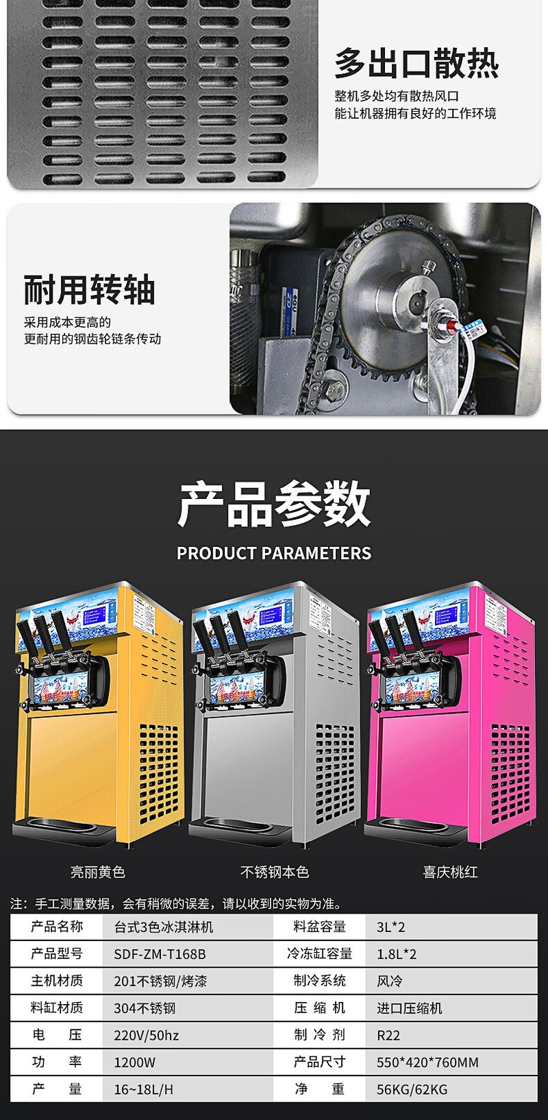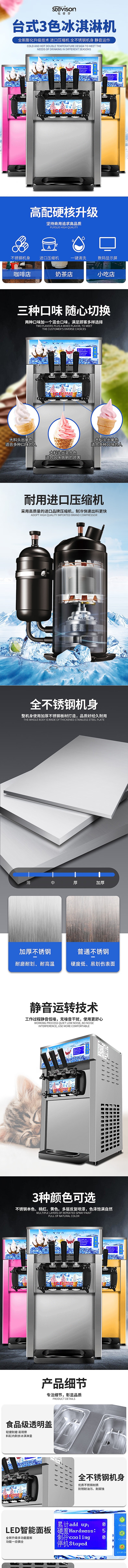 Stevison(史蒂芬) SDF-ZM-T168B 台式3色冰淇淋机 220V 不锈钢