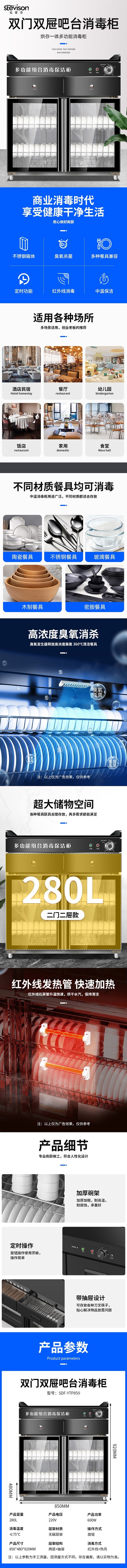 Stevison(史蒂芬) SDF-YTP850双门双屉吧台消毒柜 电压:220V,功率:600W,消毒方式:红外线+热风,层架结构:两层+抽屉 不锈钢+黑色