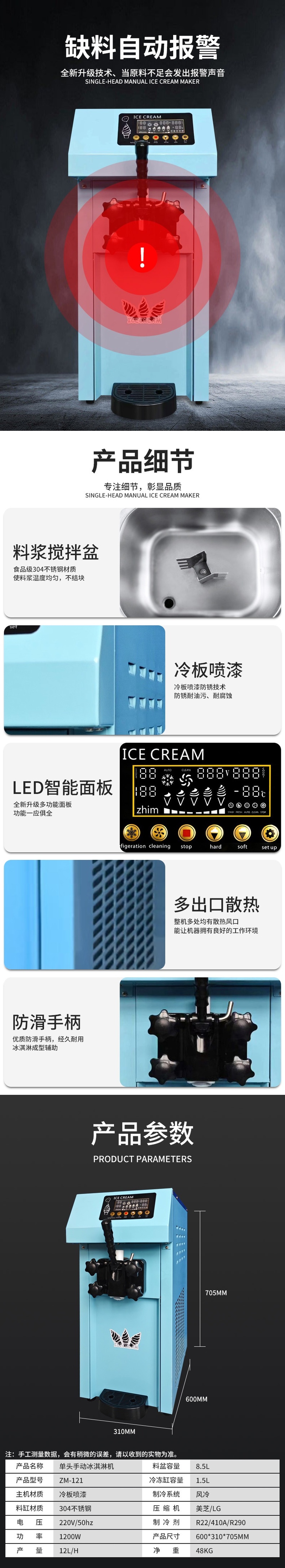Stevison(史蒂芬) ZM-121 单头手动冰淇淋机 220V 冷板喷漆