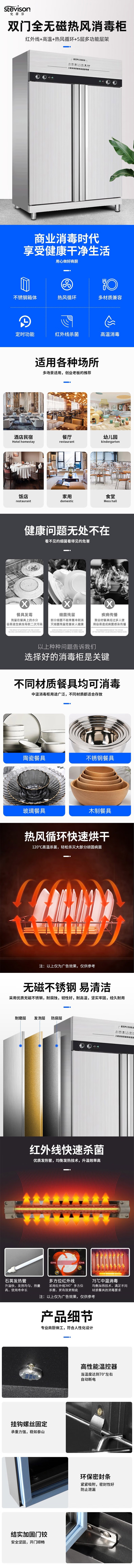 Stevison(史蒂芬) SDF-12 双门立式热风高温消毒柜 大容量:1288L 电压:220V 不锈钢