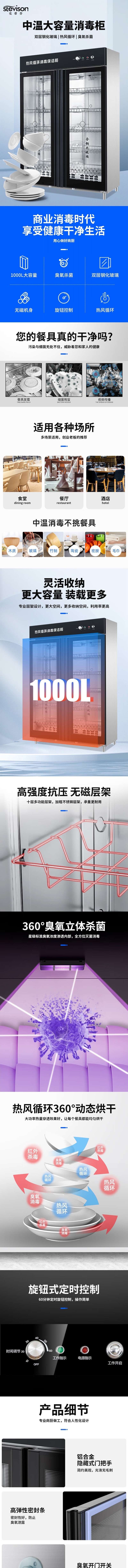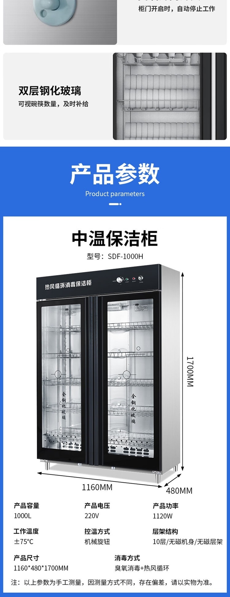 Stevison(史蒂芬) SDF-1000H 中温消毒柜 额定功率:1120W 电压:220V 容量:1000L 不锈钢+玻璃