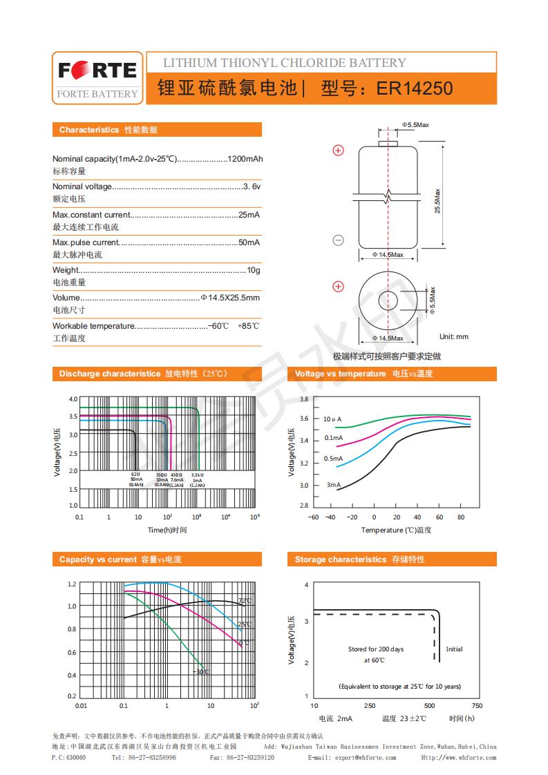 FORTE(孚特) ER14250H 锂亚硫酰氯电池