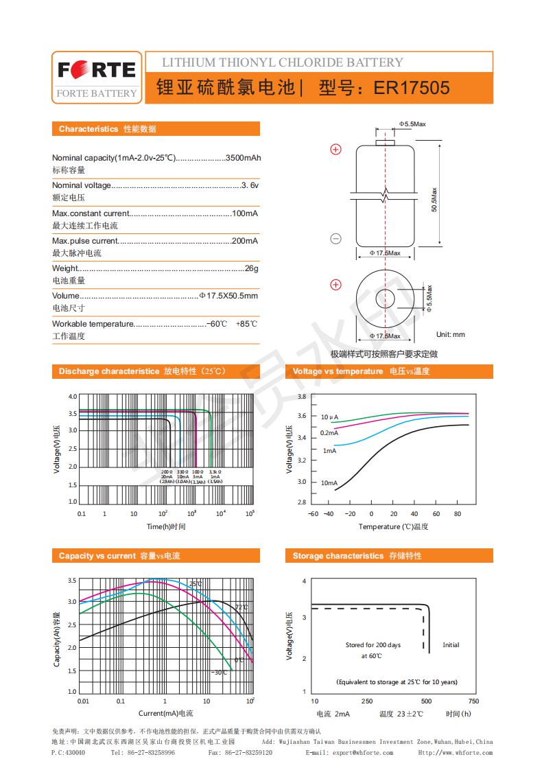 FORTE(孚特) ER17505H 锂亚硫酰氯电池