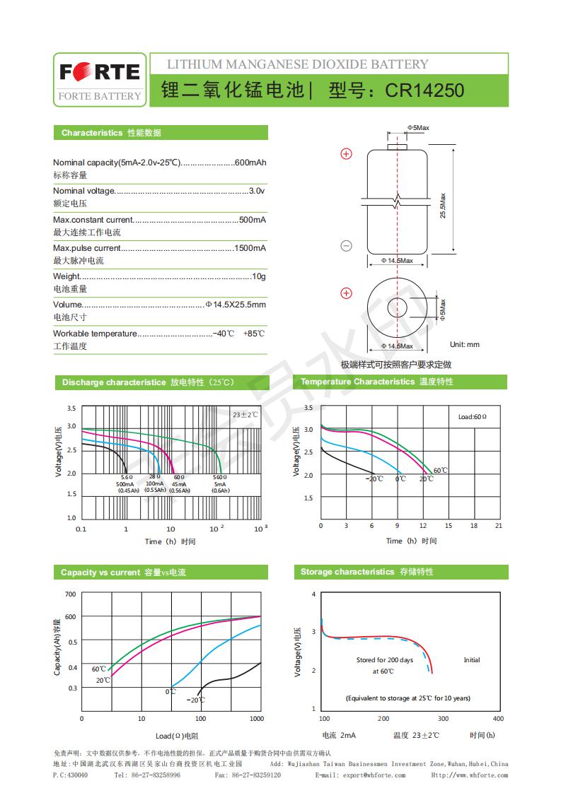 FORTE(孚特) CR14250 锂二氧化锰电池
