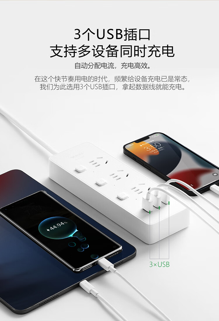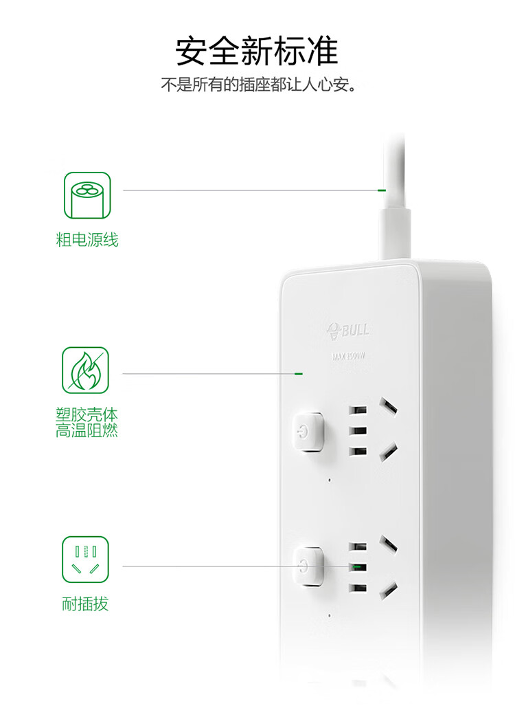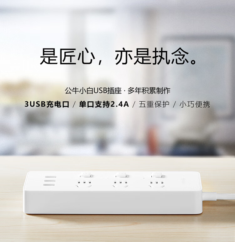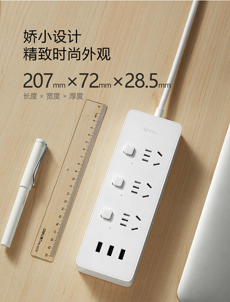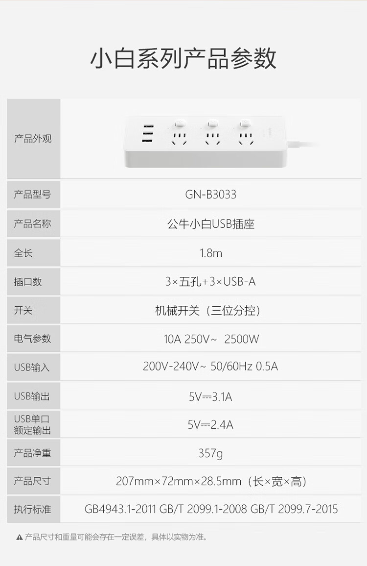 公牛USB排插 3插孔+3USB口分控开关插座1.8米 GN-B3033