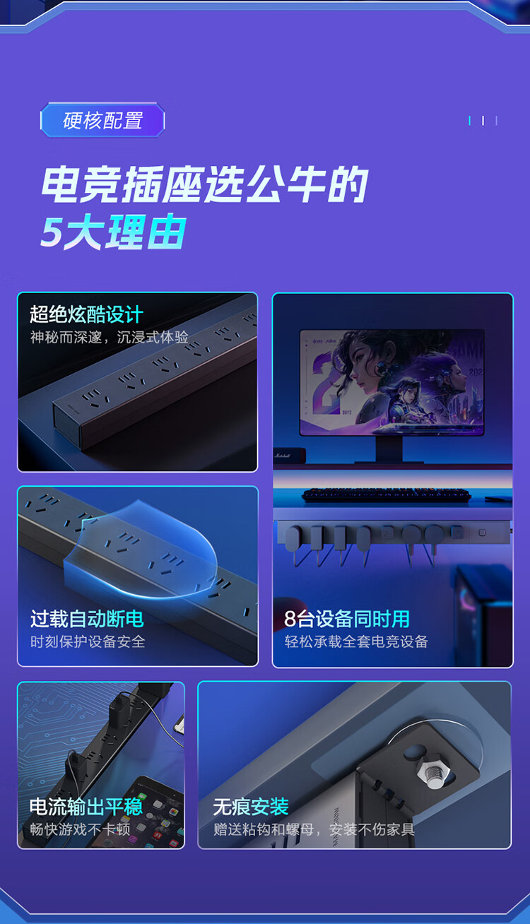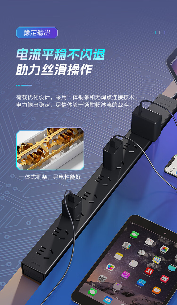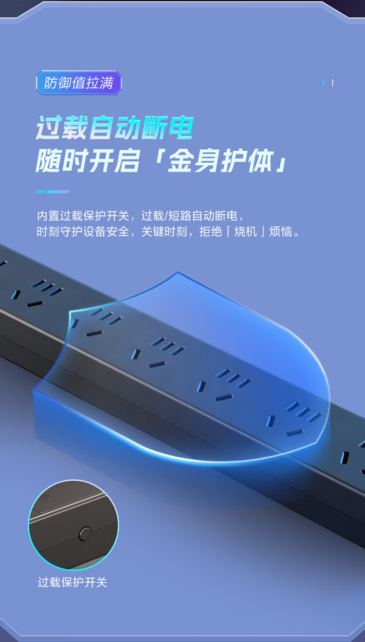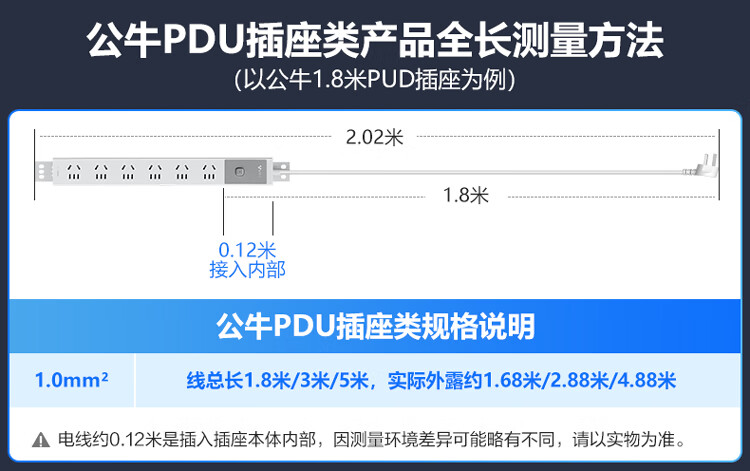 公牛PDU机柜插座8位总控3米延长线插座 防过载 GNE-P108E 3M 黑色