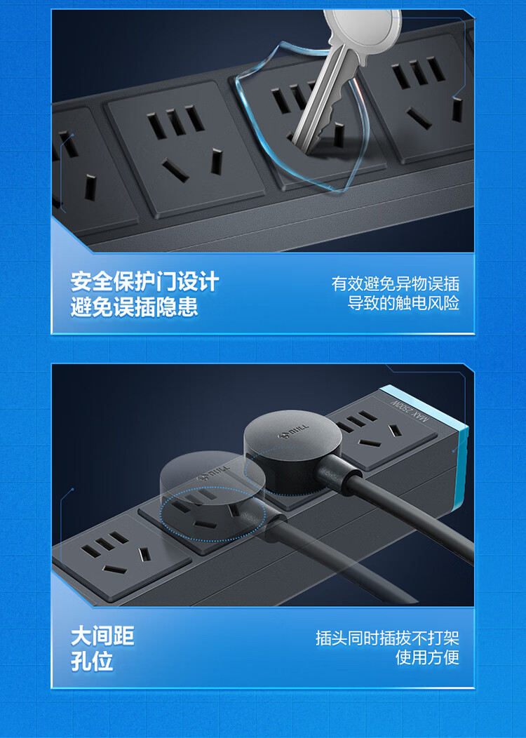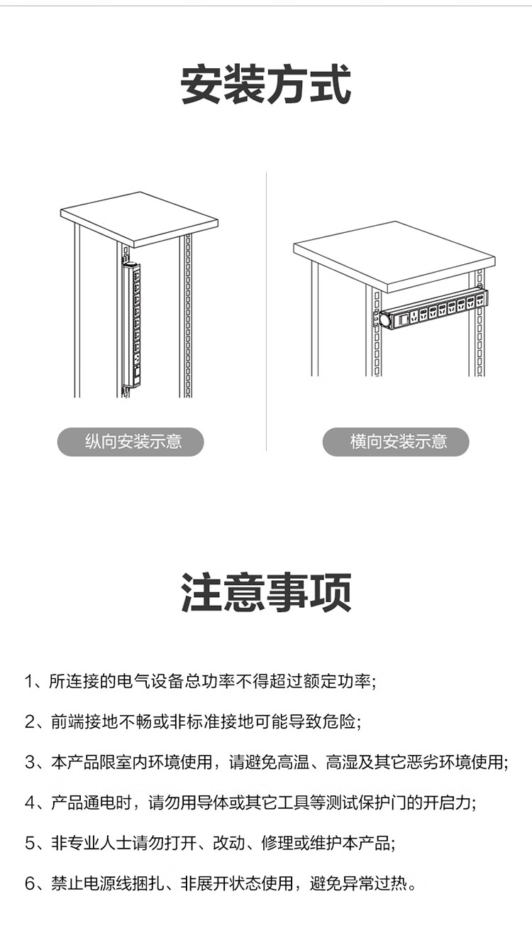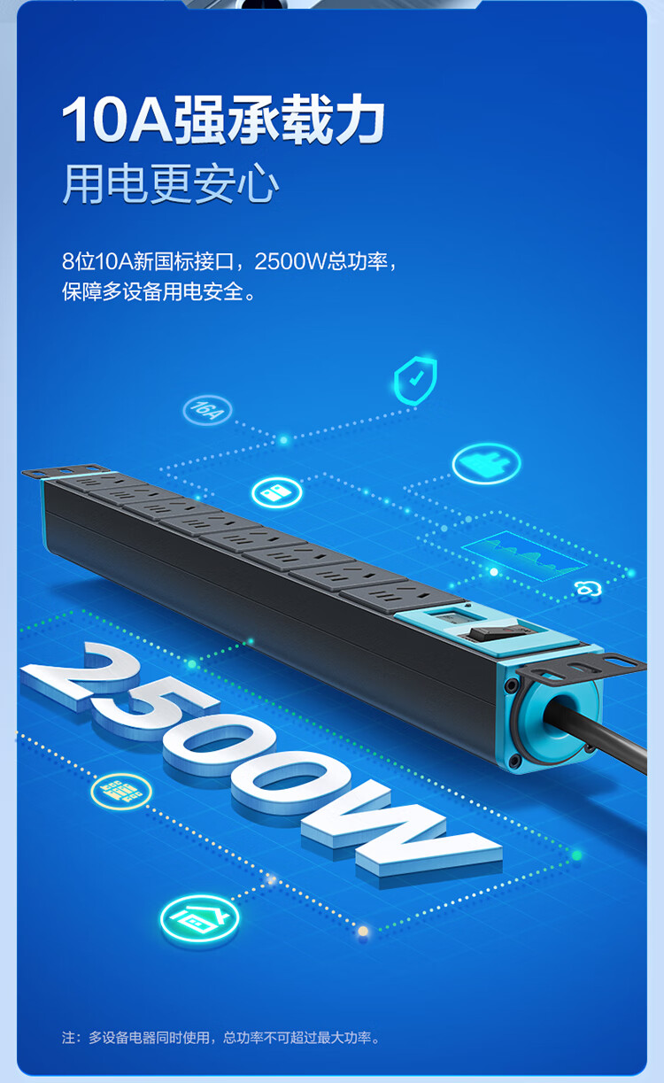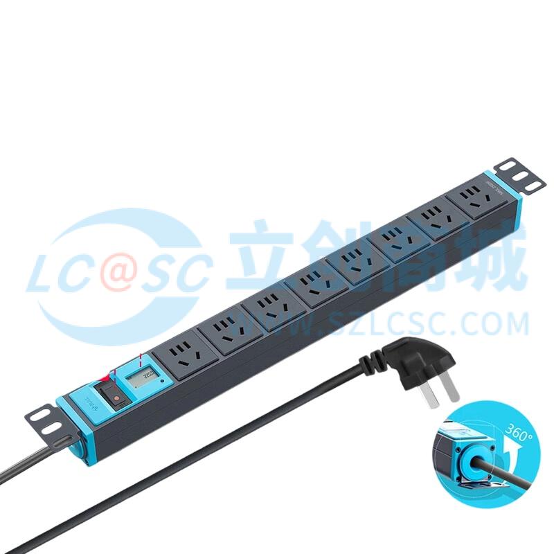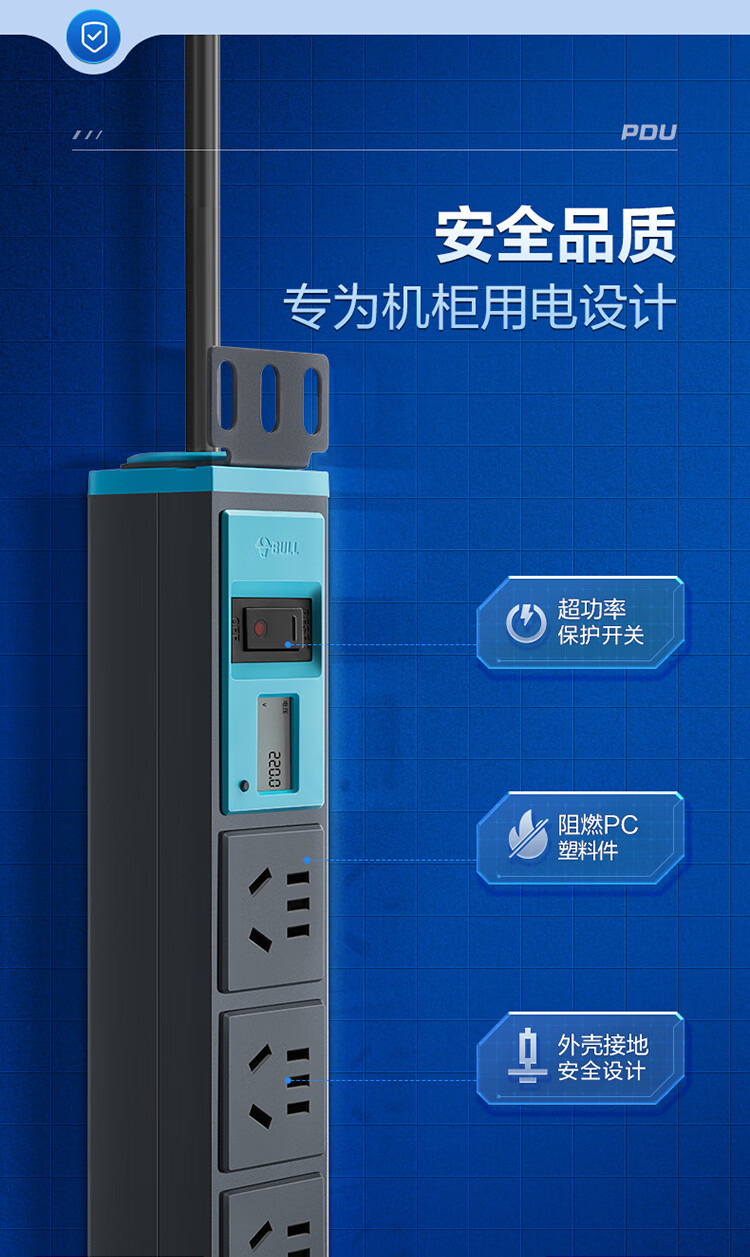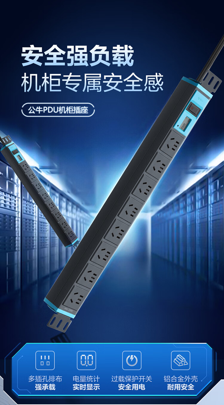 公牛PDU机柜插座10A 8位总控1.8米 过载保护+电流表 GNE-108EV 盒装灰