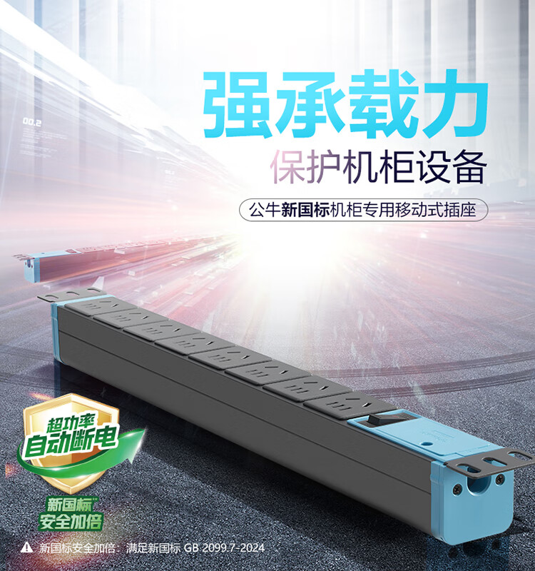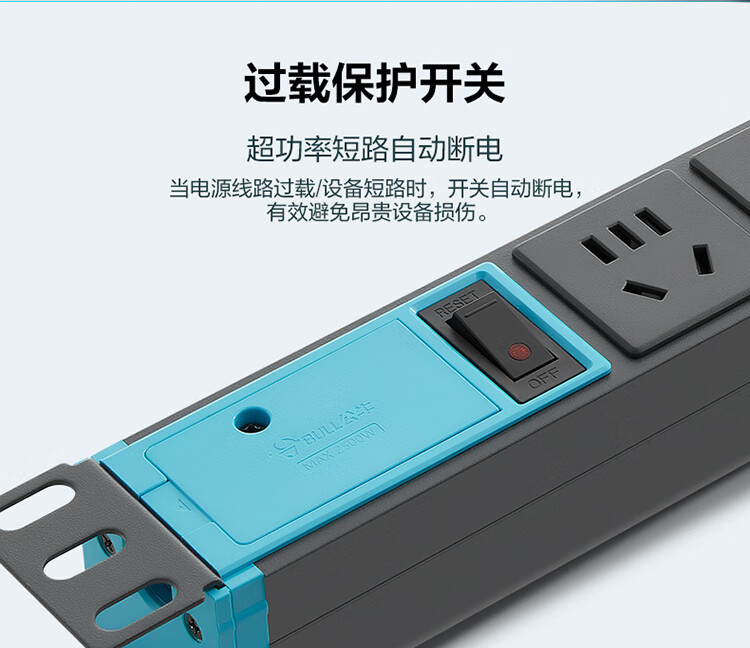 公牛PDU机柜插座10A 8位总控无线排插 过载保护 GNE-108EW(F) 盒装灰
