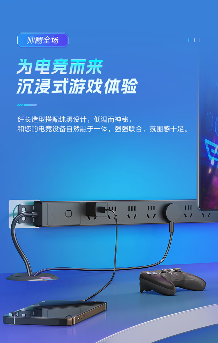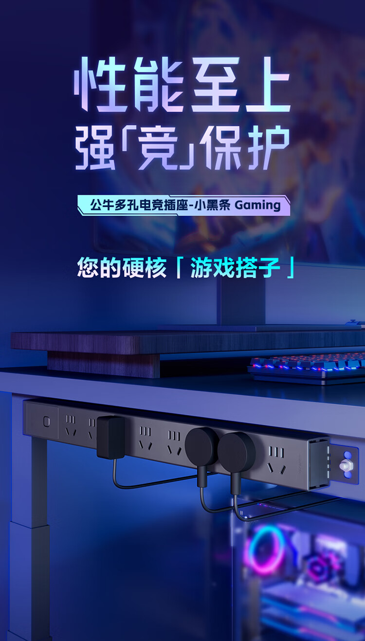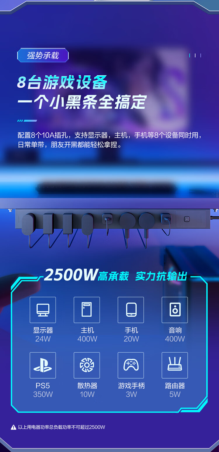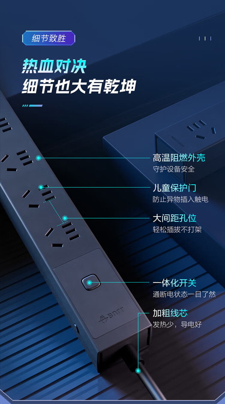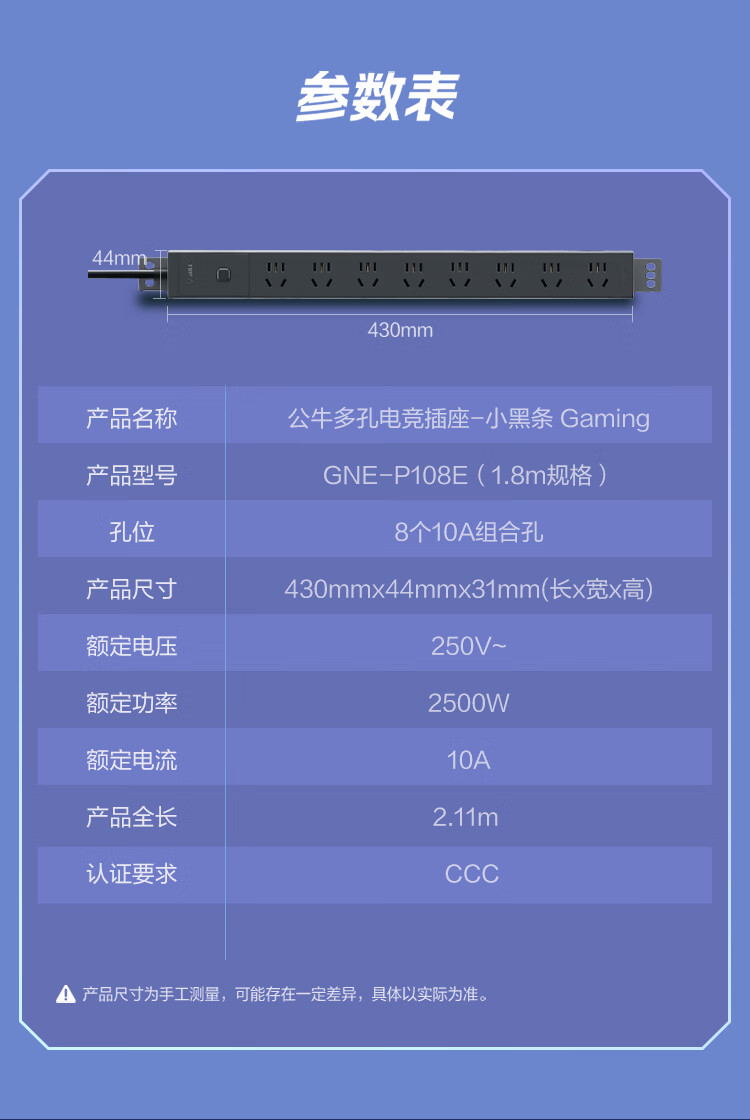 公牛PDU机柜插座8位总控1.8米延长线插座 防过载 GNE-P108E 1.8M 黑色
