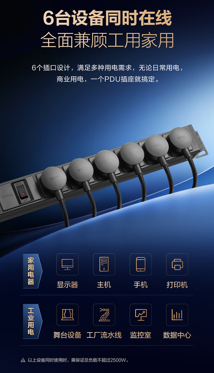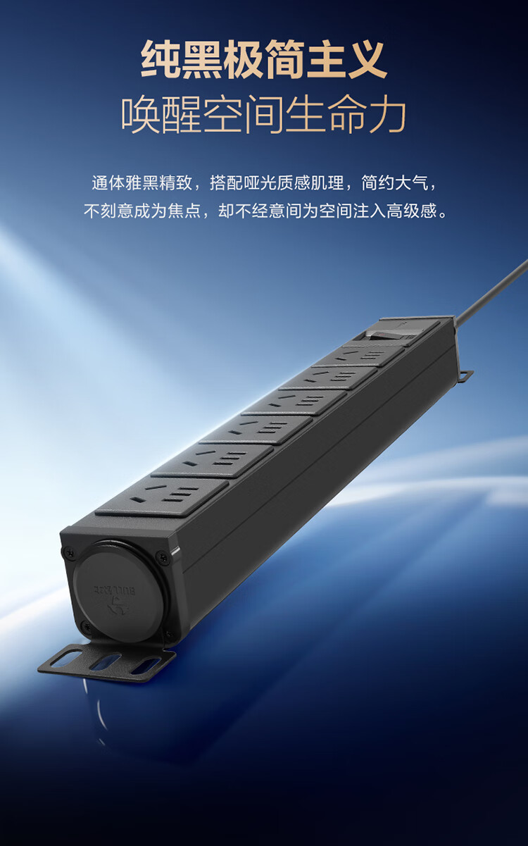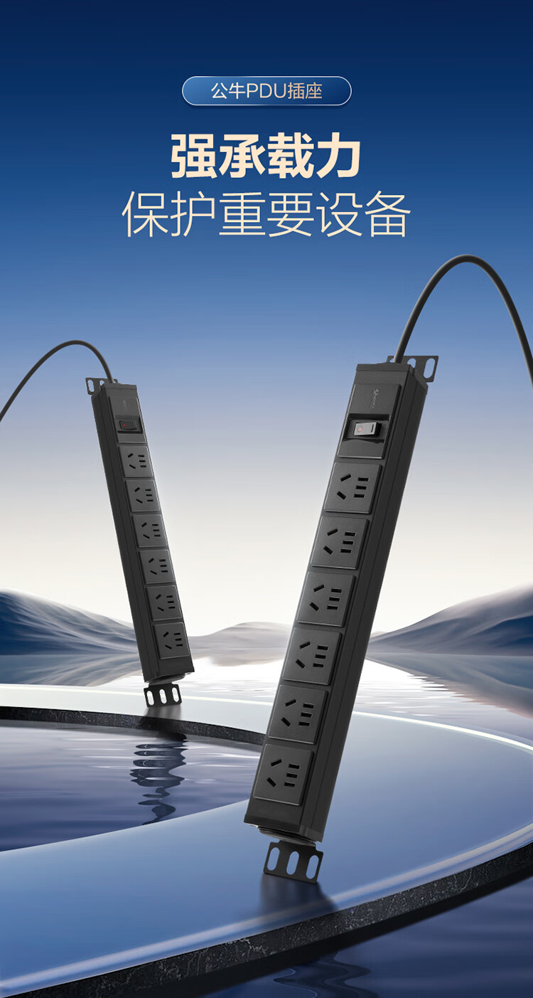 公牛PDU机柜插座10A 6位总控1.8米 过载保护 GNE-106E 盒装黑