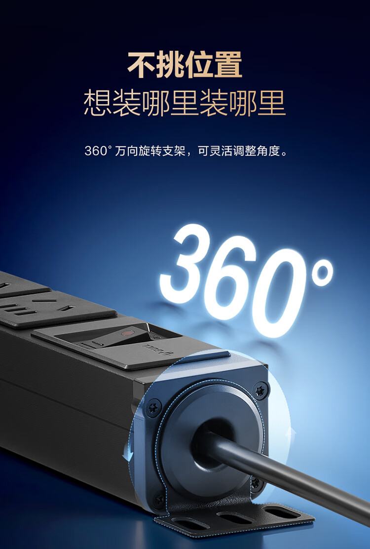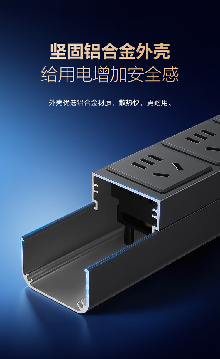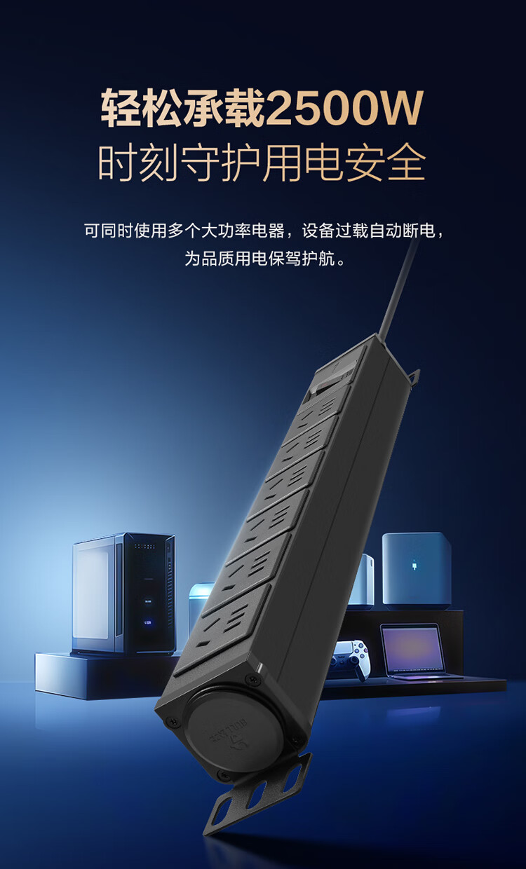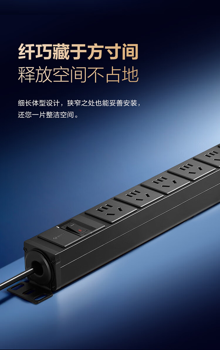 公牛PDU机柜插座10A 6位总控1.8米 过载保护 GNE-106E 盒装黑