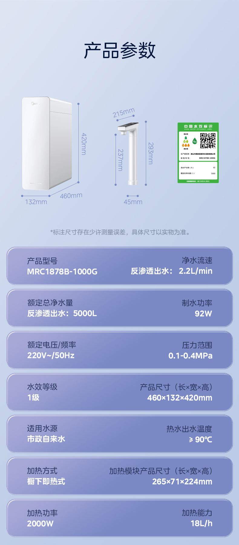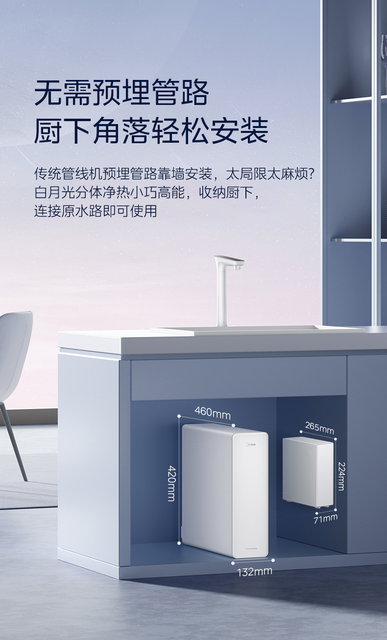 Midea(美的) MRC1878B-1000G 橱下式净水机 极地白