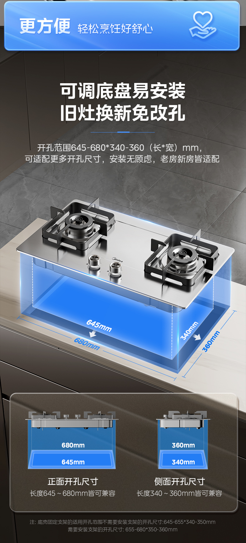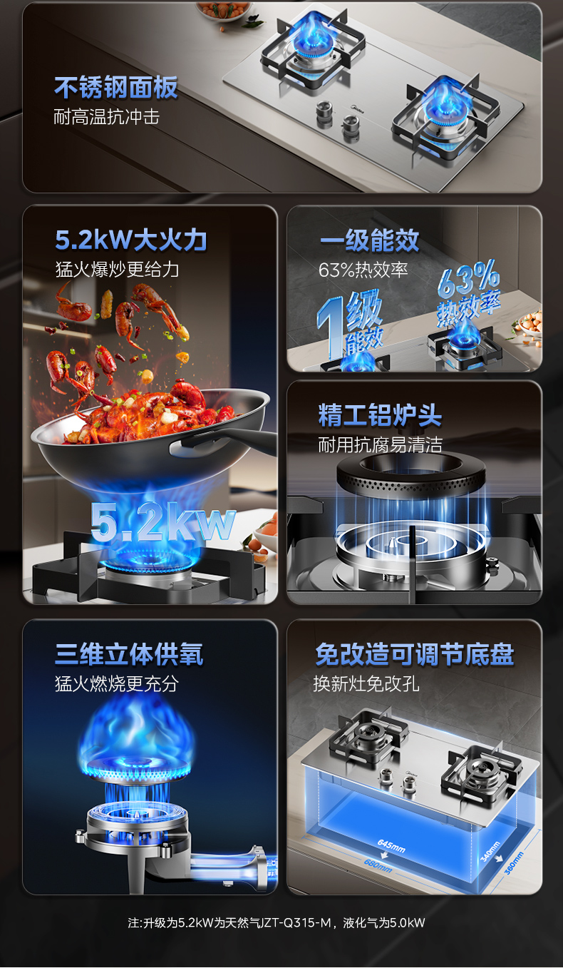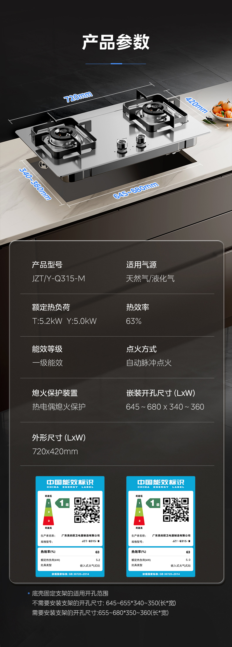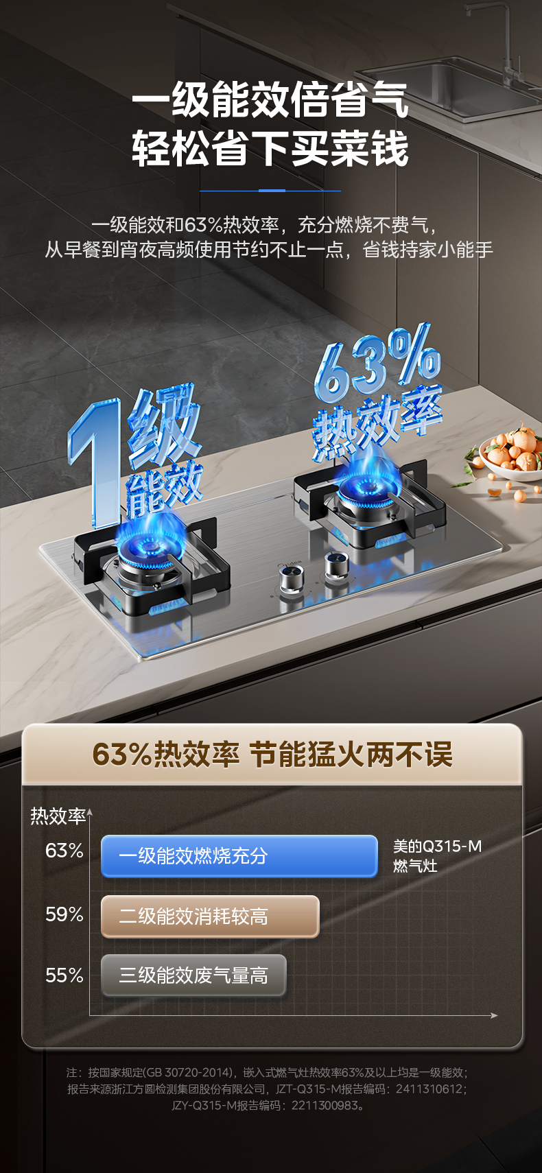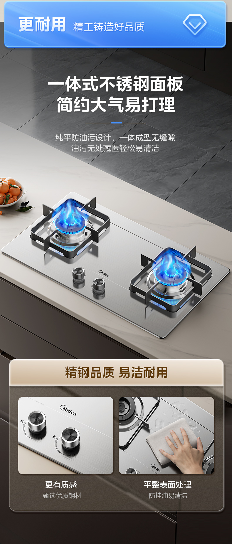 Midea(美的) JZT-Q315-M 嵌入式燃气灶 不锈钢 双头 天然气 一级能效