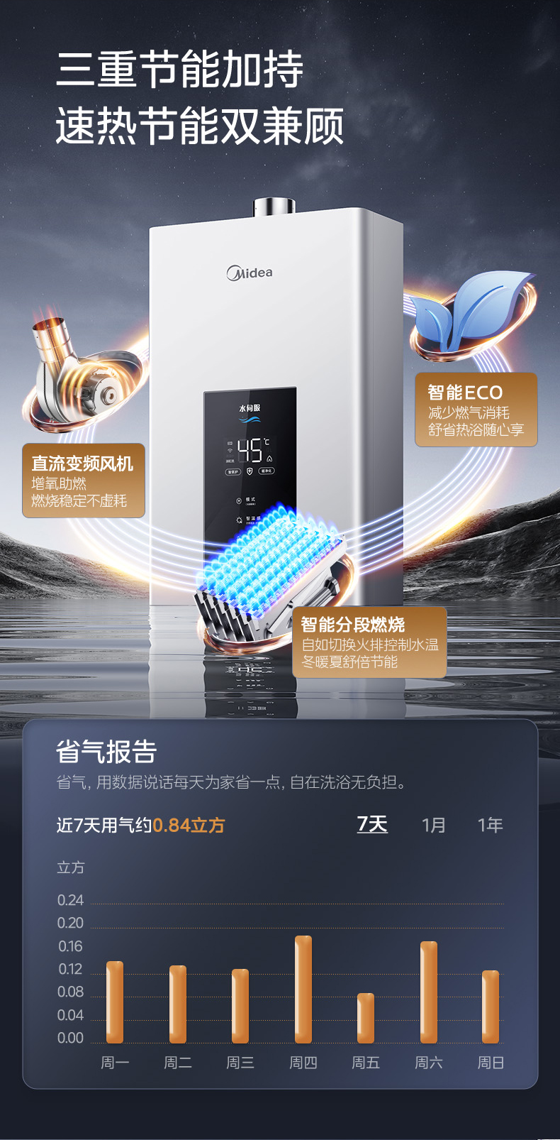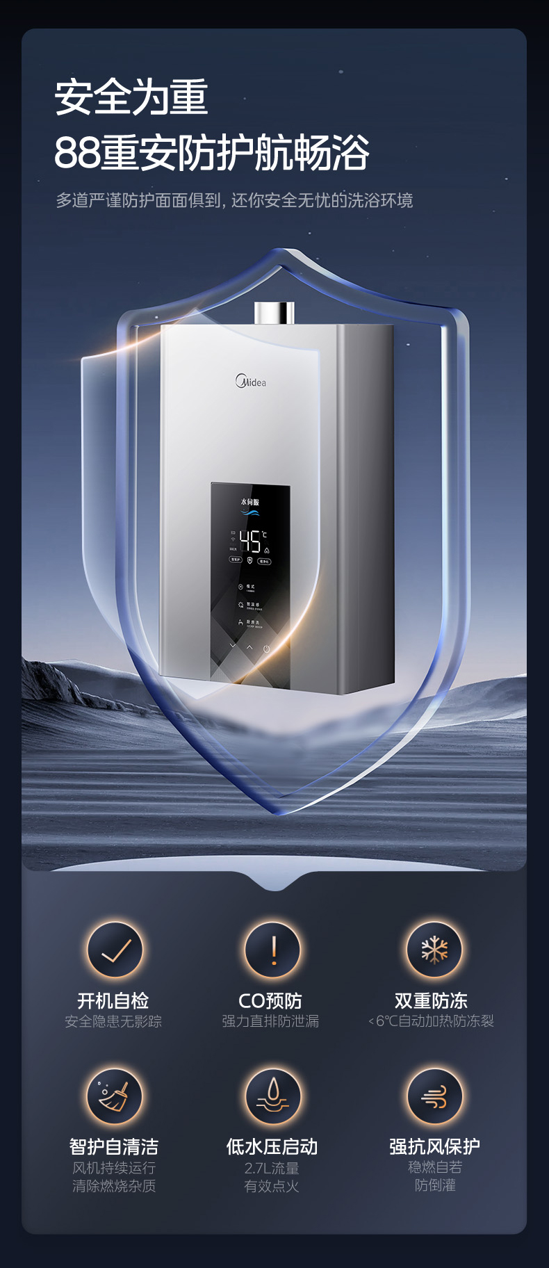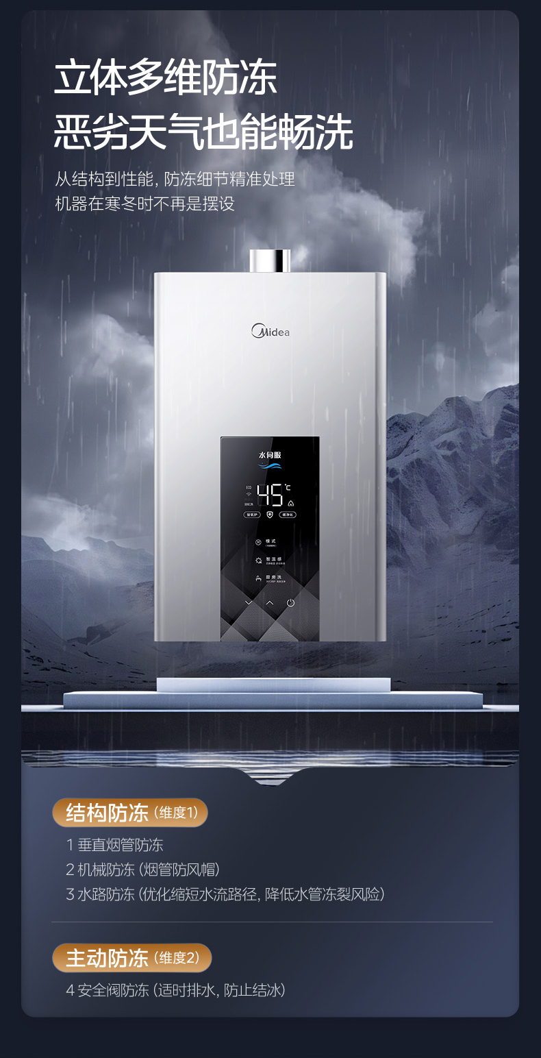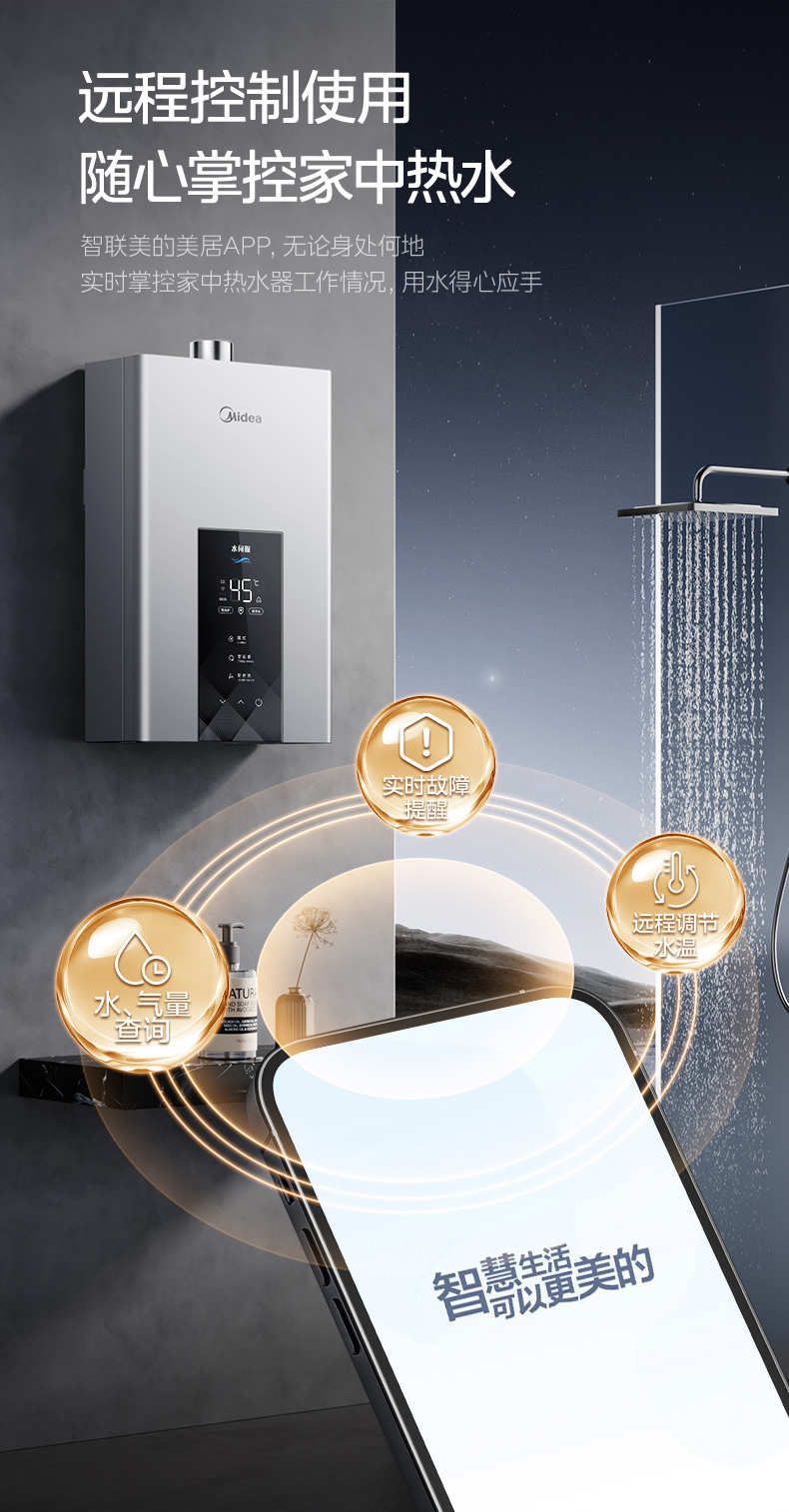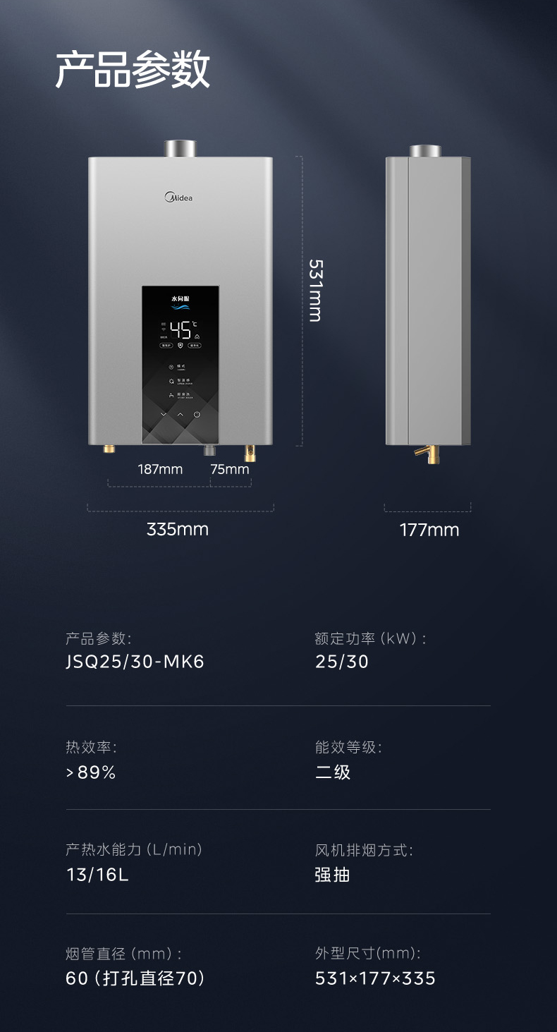 Midea(美的) JSQ25-MK6 恒温式燃气热水器 钛钢灰 12T 电辅加机械防冻 耀夜